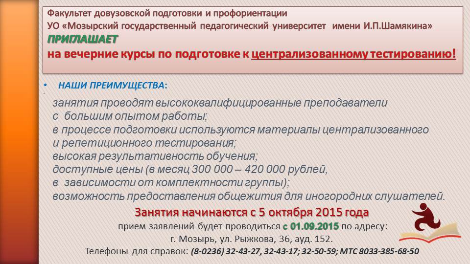 Приглашаем на курсы по подготовке к ЦТ-2016!