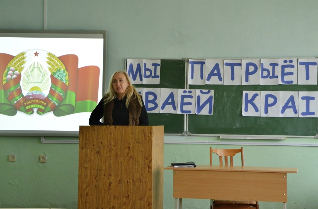 Заместитель декана по идеологической и воспитательной работе факультета ДиНО Карпович И.А. рассказала о государственной символике Беларуси, о достижениях и перспективах развития страны.