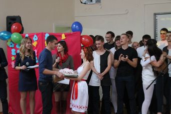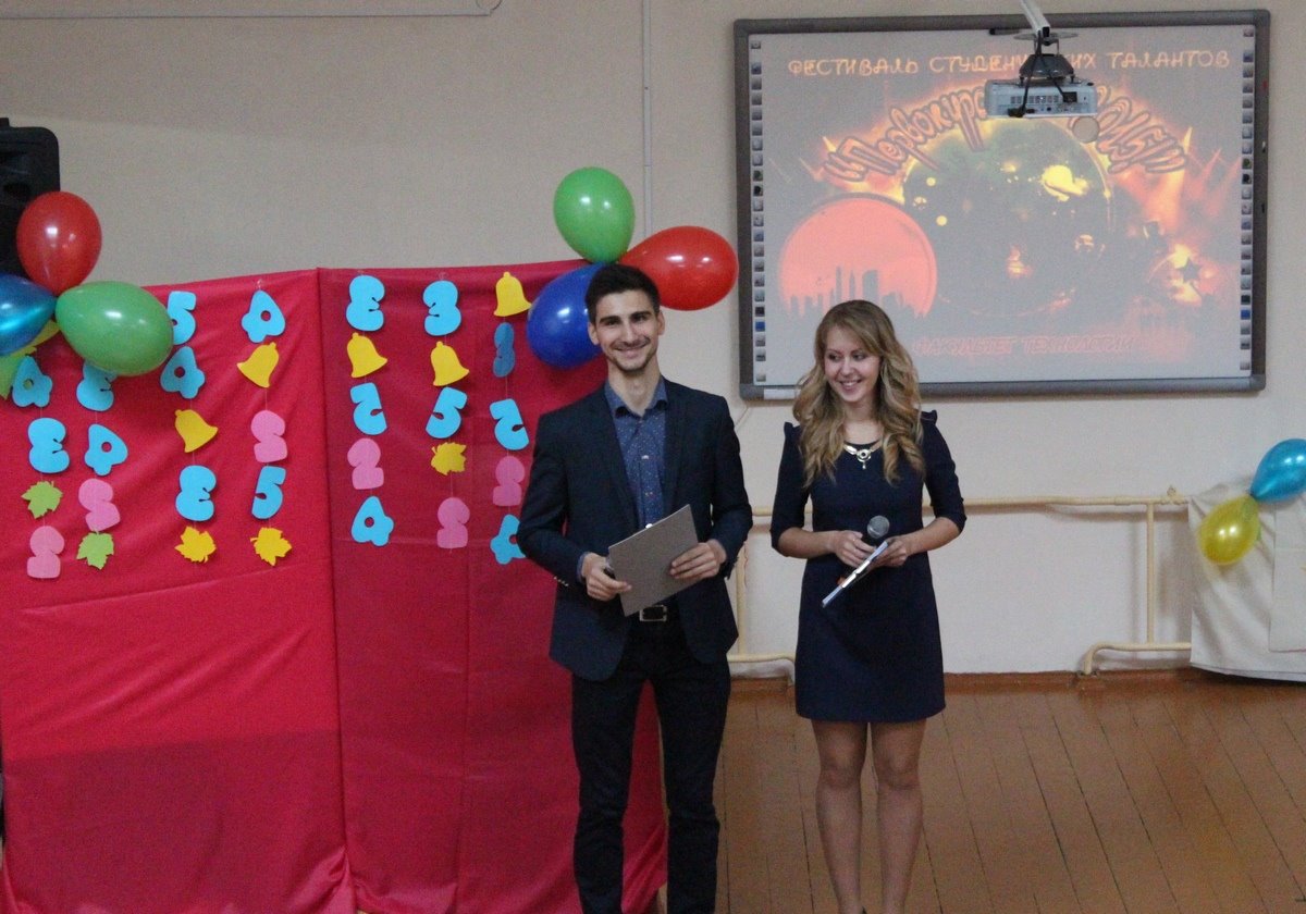 Вели конкурсную программу по традиции наши старшекурсники, в этом году это были Анна Белячкова и Сергей Кузьменко.