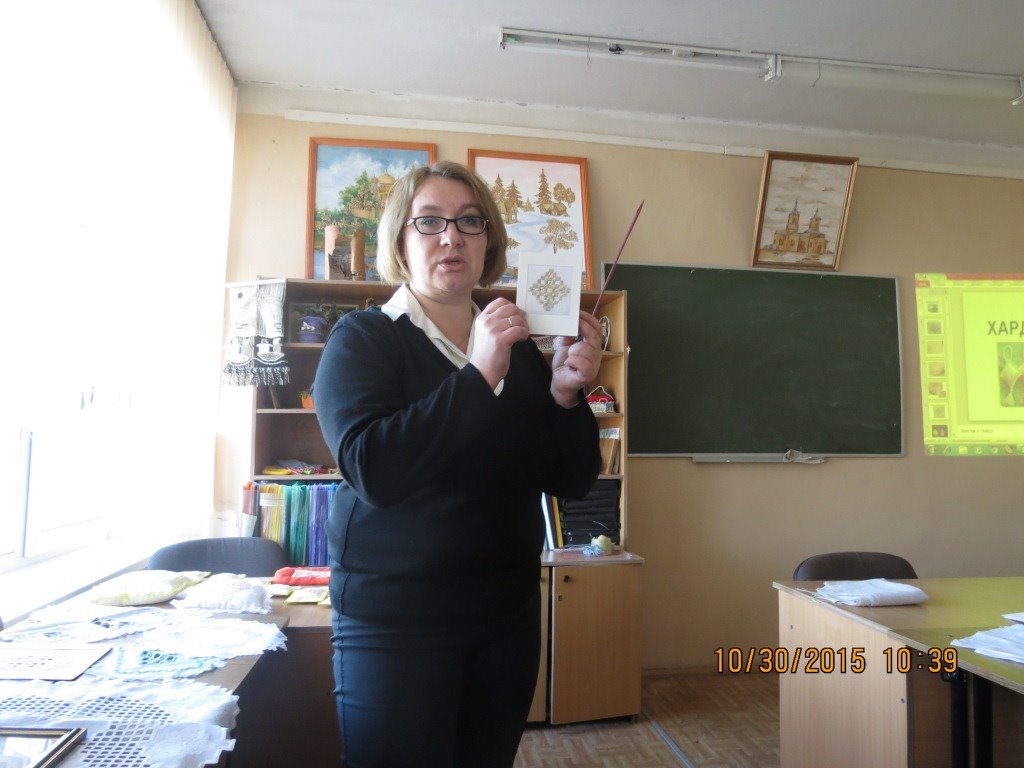 Далее, в соответствии с программой семинара, был проведен мастер-класс «Изготовление открытки в технике «Хардангер» (Тихонова Е.В., Карась С.И.).