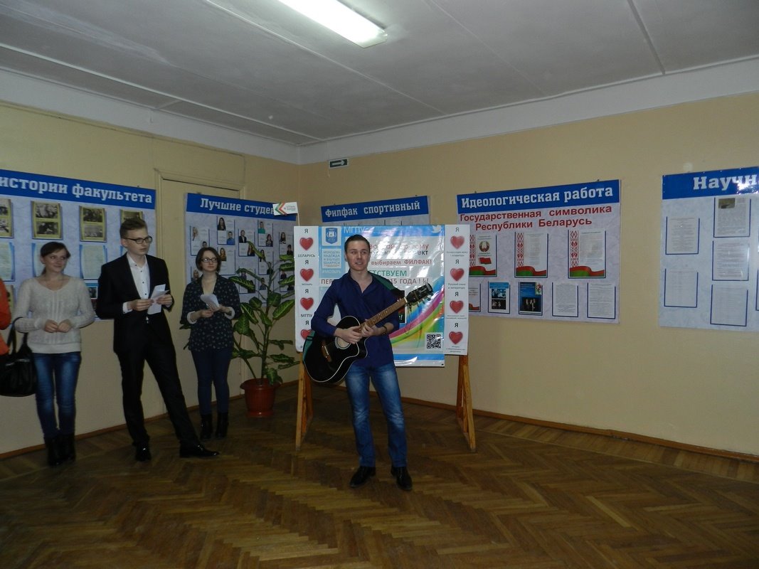 Студенты Горбачук В., Бутковская Л. подготовили литературную гостиную «О, я хочу безумно жить: Всё сущее – увековечить!», посвящённую 135-летию со дня рождения А. Блока. Гудинов Н., Власенко К. организовали для студентов и преподавателей фестиваль студенческой песни «Эй, студент, как ты хочешь жизнь прожить?». Своё вокальное мастерство продемонстрировали Радионов Р., Батюня Д., Хожакулов Р. и др. Латышев К. и Синицкая И. провели инфосессию для студентов 1 – 4 курсов «Международное гуманитарное право в современном мире». Силич В. и Карпова К. на протяжении всего дня проводили блиц-интервью «Современный студент – это…» и «Как это было…». Активно работал студенческий пресс-центр, в котором оперативно обрабатывались все информационные и презентационные материалы. Ковалевич В. и Качан И. подготовили «Дневник самоуправления – 2015».