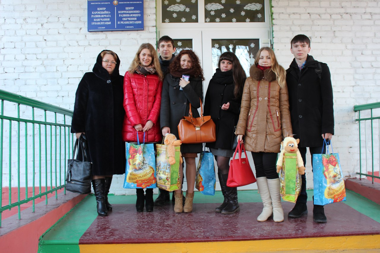 Ребятишки и гости праздника окунулись в атмосферу добра и любви, радости и волшебства во время представления сказки «Золушка». Каждое выступление зрители встречали бурными аплодисментами и радостными улыбками. Волонтеры факультета Синицкая Илона, Латышев Кирилл, Карпова Ксения, Максименко Алена, Носов Виктор, Шаврей Алина, Каноплич Мария поздравили всех присутствующих с Новым Годом и Рождеством и вручили новогодние подарки воспитанникам центра – Липскому Даниилу, Кравченко Светлане, Бамбиза Сергею, Савицкому Дмитрию, Реут Марии.