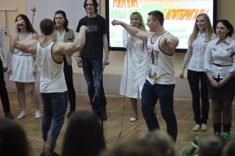 Выступление команды было ярким и красочным, отличалось актуальностью, позитивным подходом, разнообразием программы. Пропагандируя активный, здоровый образ жизни, студенты пели, танцевали, шутили, рисовали, провели акцию «Меняю сигарету на конфету»….