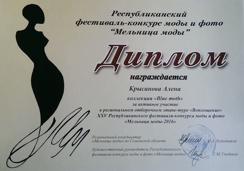 Отрадно отметить, что коллекция одежды, представленная нашими студентками в этом году, была удостоена дипломов и прошла в финал конкурса, что воодушевляет и вдохновляет на новые творческие поиски.