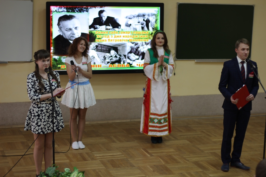В завершении пленарного заседания студенты филологического факультета презентовали творческий проект “Сёння табе гонар і пашана”, посвященный 95-летию со дня рождения И.П. Шамякина (руководитель Судибор Ирина Леонидовна, зам. декана по воспитательной работе филологического факультета).