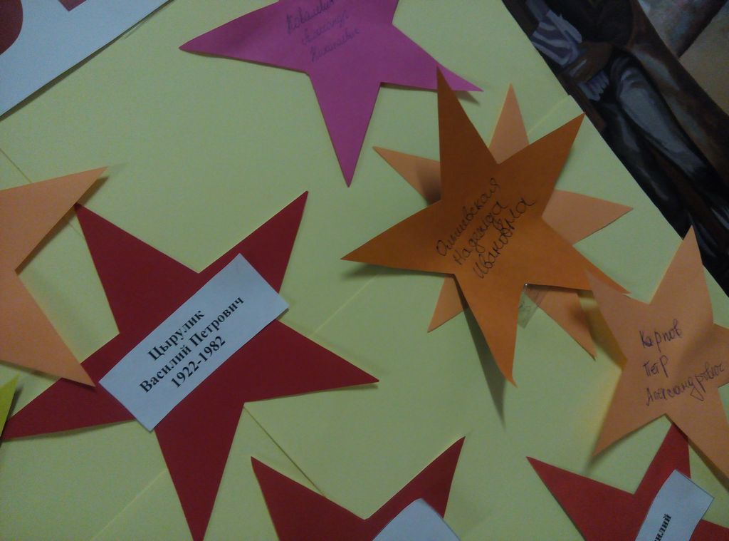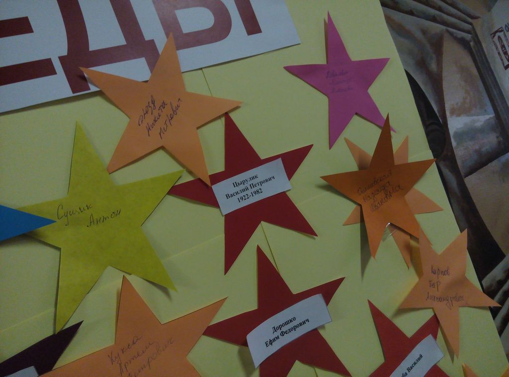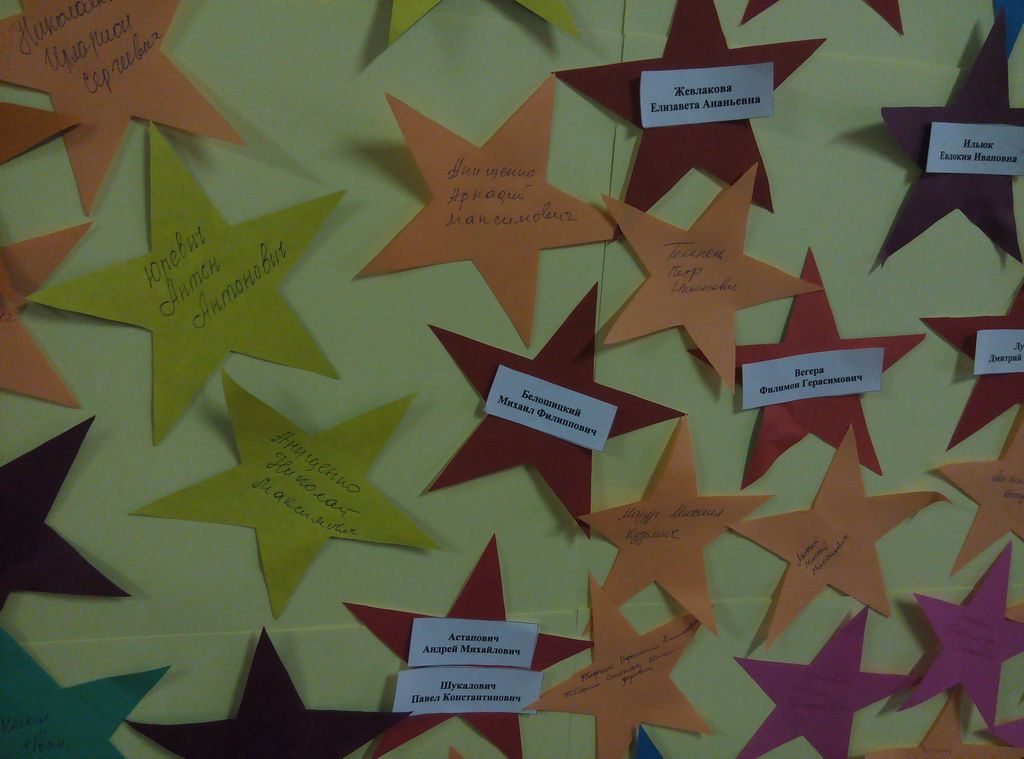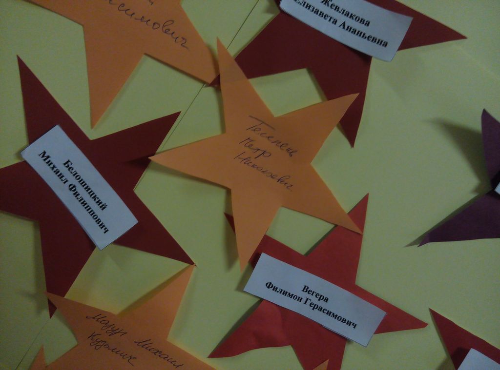 Участники акции с гордостью написали на звёздочках Победы имена Героев своих семей в память о бессмертном подвиге, который они совершили во имя нашего будущего. Самое дорогое и священное, что отец передаёт сыну, дед внуку, одно поколение другому – это память. Память о наших героях Победы не померкнет в веках. В наших сердцах никто не забыт – ничто не забыто…