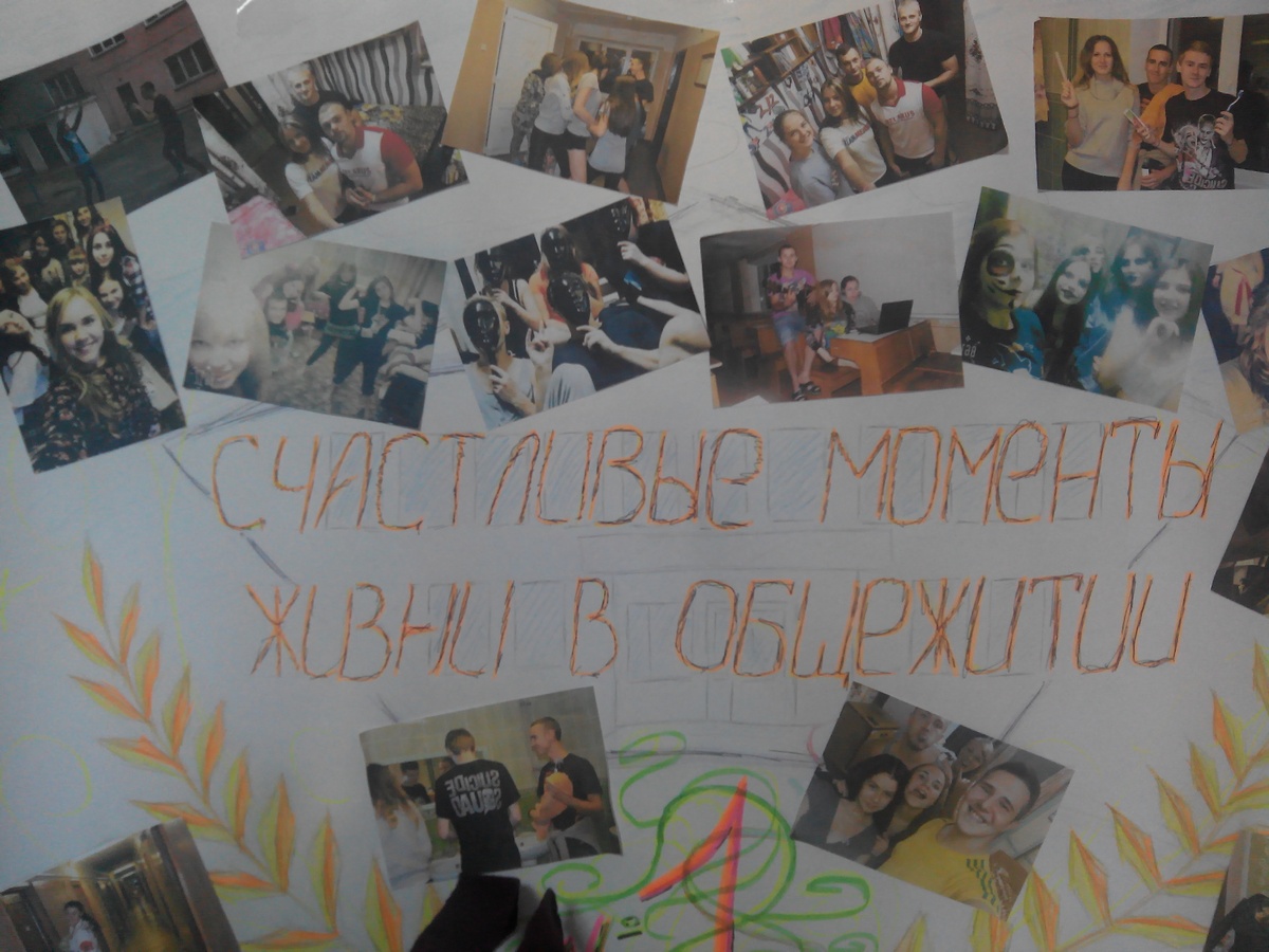 Студентами, проживающими в общежитиях, были подготовлены фото-коллажи «Счастливые моменты жизни», в которых ребята отразили наиболее яркие случаи из студенческой жизни, подарив тем самым всем хорошее настроение.