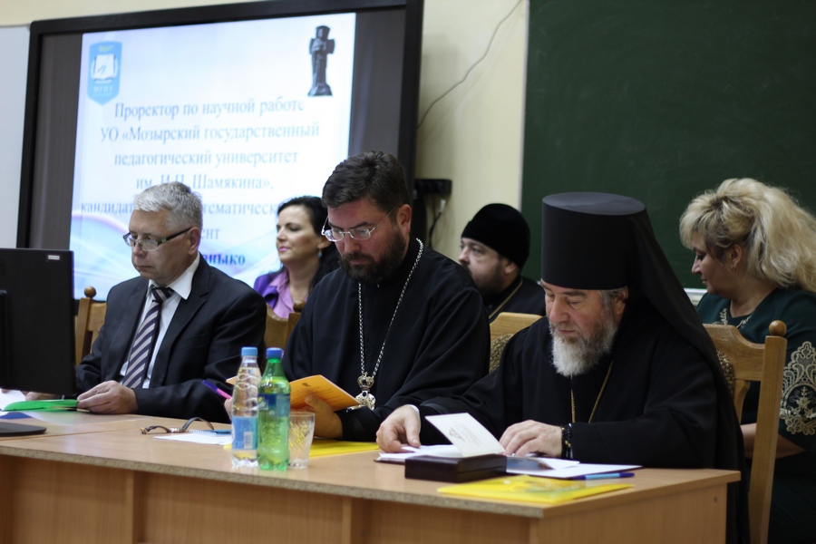 Начальник отдела образования, спорта и туризма Мозырского райисполкома Клепчукова Л.С. в своем приветствии выразила надежду на то, что Мозырский педагогический университет, а также другие учебные заведения г.Мозыря, продолжат активное взаимодействие с Туровской епархией по вопросам духовно-нравственного воспитания молодежи.