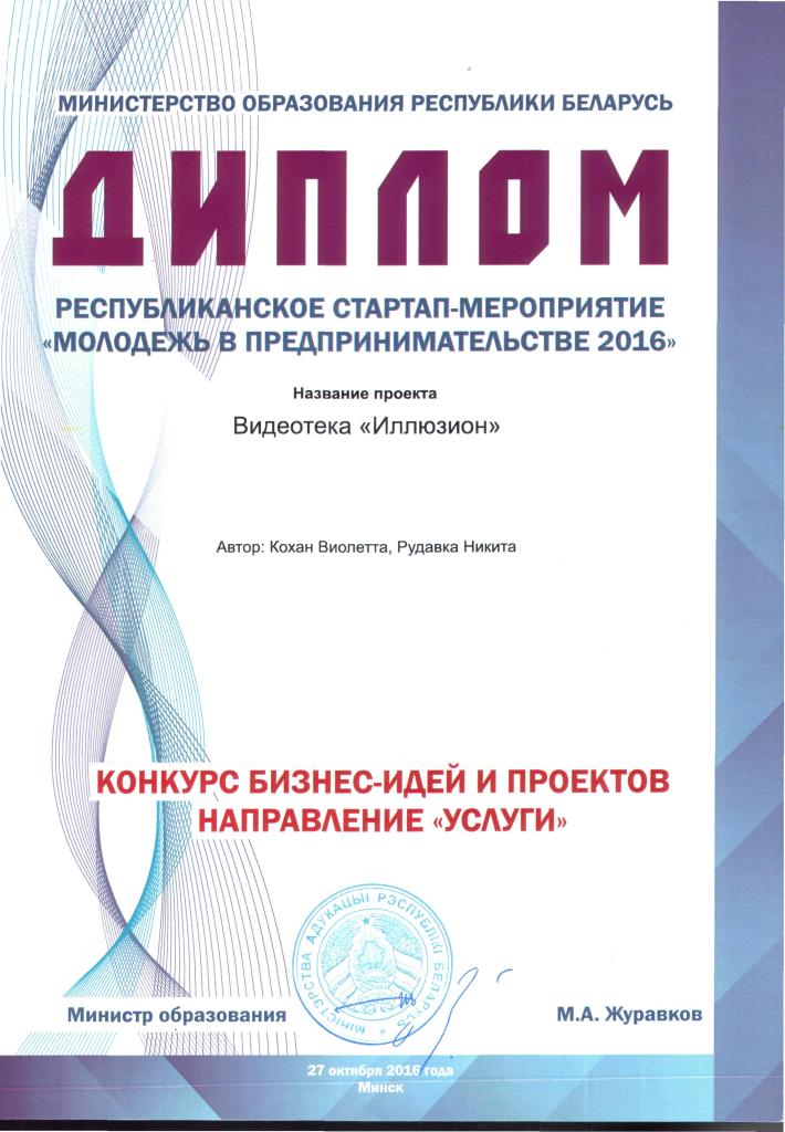 В направлении «Услуги» Кохан Виолетта защитила проект «Видеотека «Иллюзион»» студентка 1 курса технолого-биологического факультета. Руководителем по разработке данного проекта являлась старший преподаватель Докучаева Наталья Николаевна.