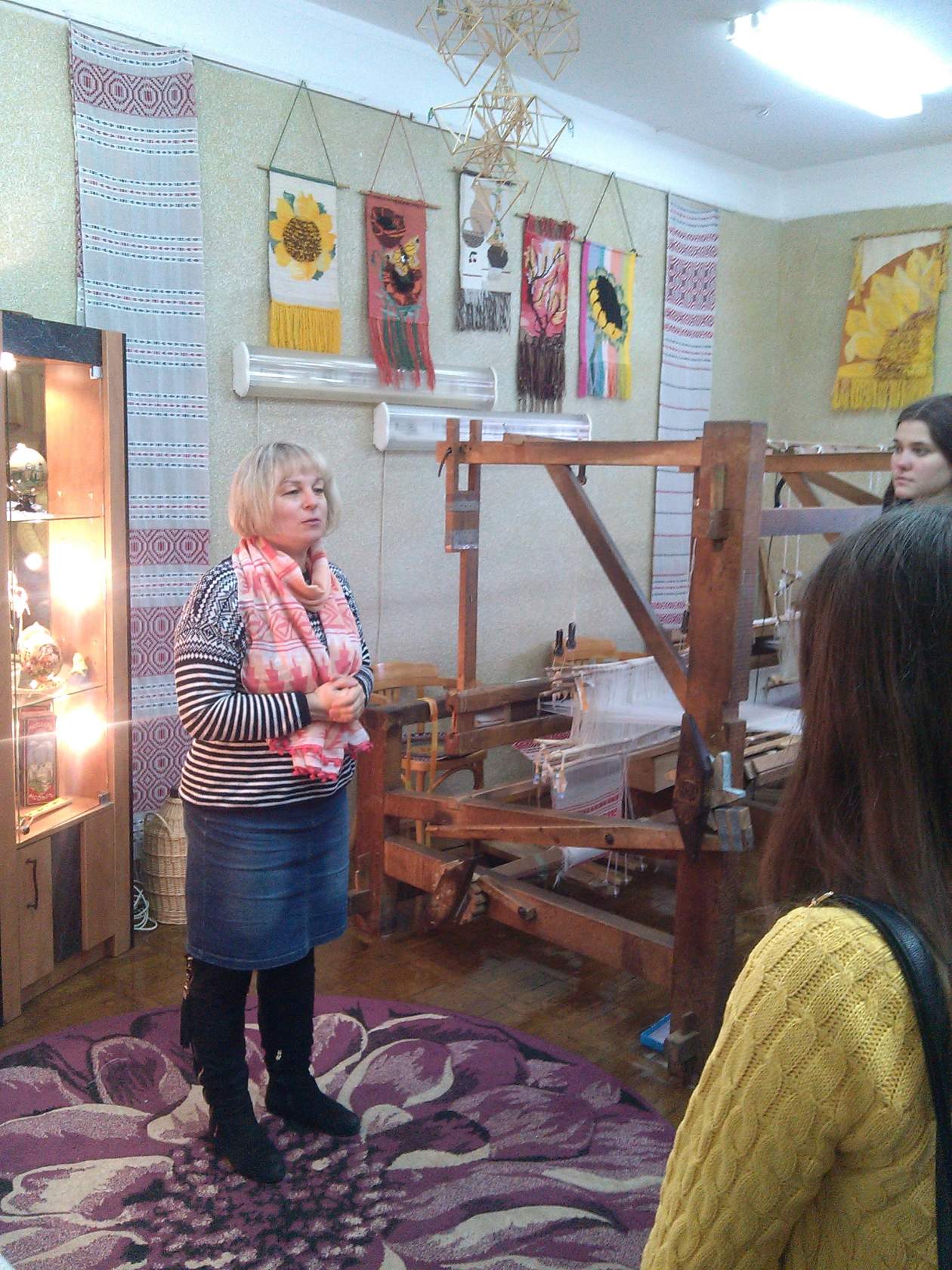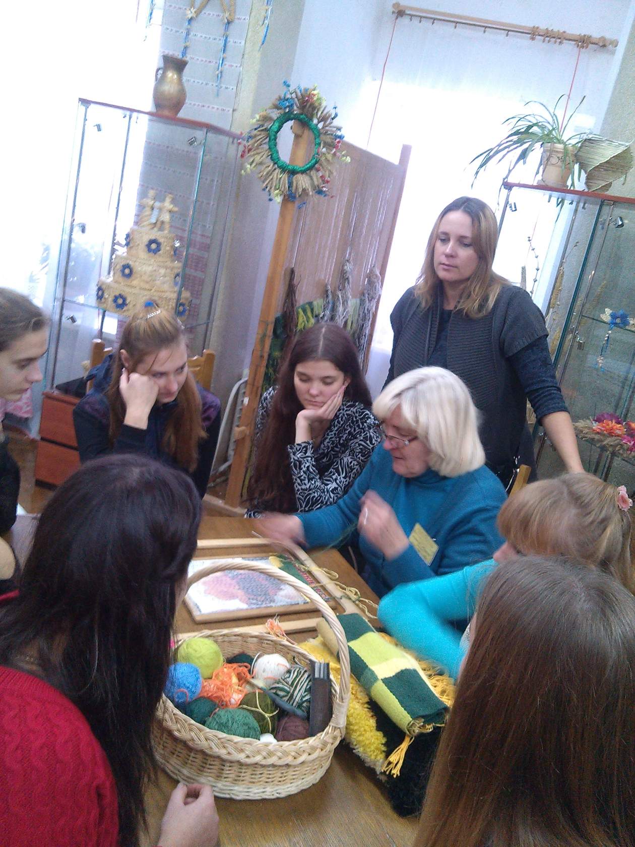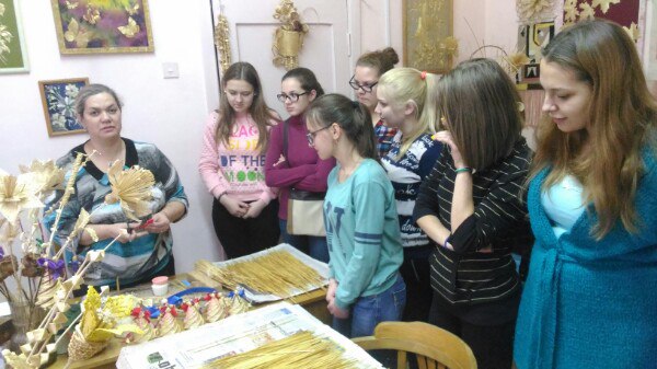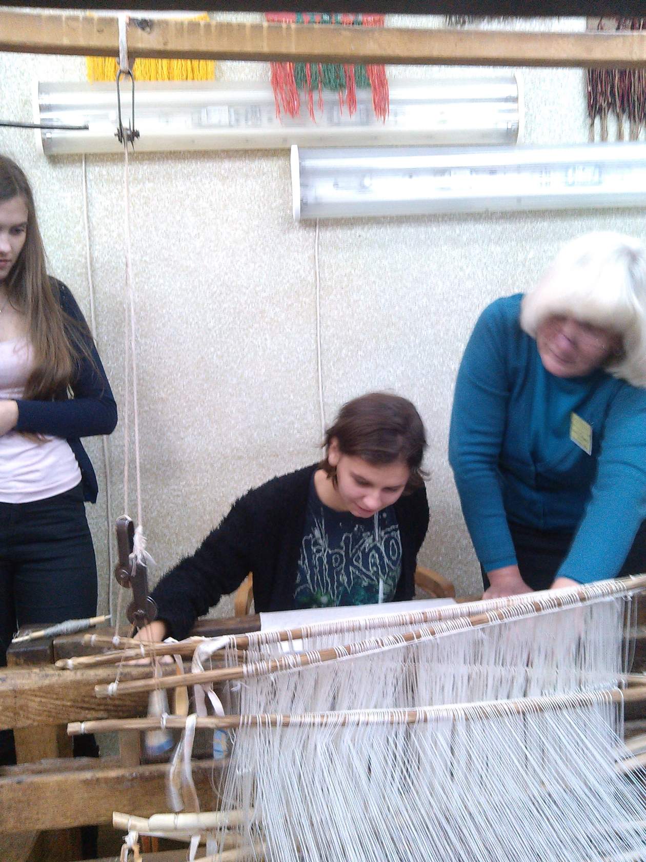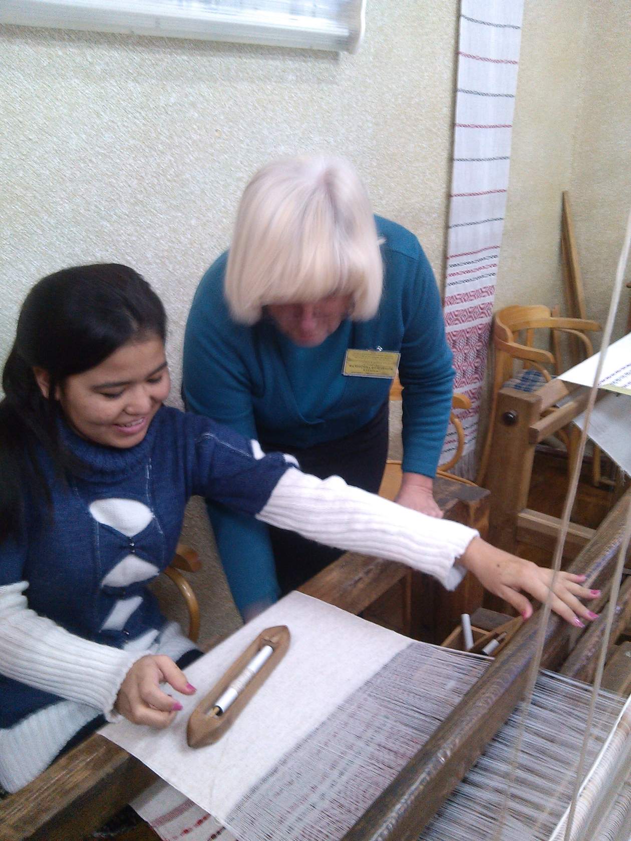 Во время экскурсии студенты с огромным удовольствием слушали вступительное слово директора Натальи Адамовны Хорошкевич о работе мастеров Центра ремесел и национальных культур. После проведения мастер-классов по ткачеству многие студенты даже пробовали ткать «рушники» на старинном ткацком станке (одна из студенток 1 курса – туркменка Айгуль Язкулова была в восторге от ткачества), не менее увлекательным было и занятие по гобелену, а также экскурсанты познакомились с процессом соломоплетения (лозоплетения) и научились плести изделия.
