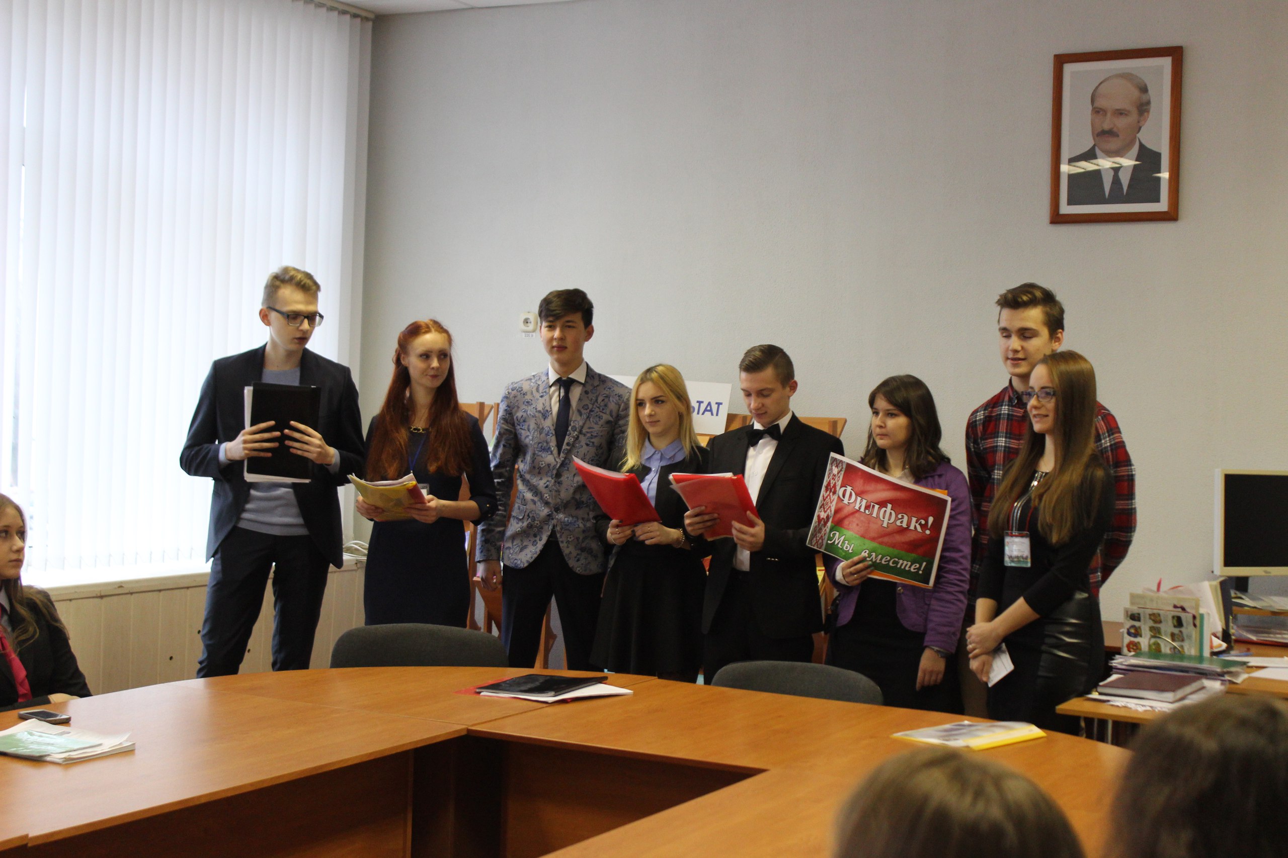 В этот день обязанности декана филологического факультета исполняла Ширко А.В. (5 курс, 1 группа); заместителя декана по учебной работе – Шаврей А.С. (5 курс, 1 группа); заместителя декана по воспитательной работе – Власенко К.А. (3 курс, 1 группа). В начальство также попали: Слуцкий А.М., Костишина О.В., Силич В.Г., Качан И.И., Андрейковец А.В., Рафальская В.Г., Панасюк А.В., Гудинов Н.Ю., Койдан Т.П. и др. В роли преподавателей выступили: Комар А.Н., Каленик К.В., Костишина О.В., Кошкина Т.И., Чередина А.А., Макеев А.В., Чижевская В.И., Белая А.А., Метельский Н.А. и др.