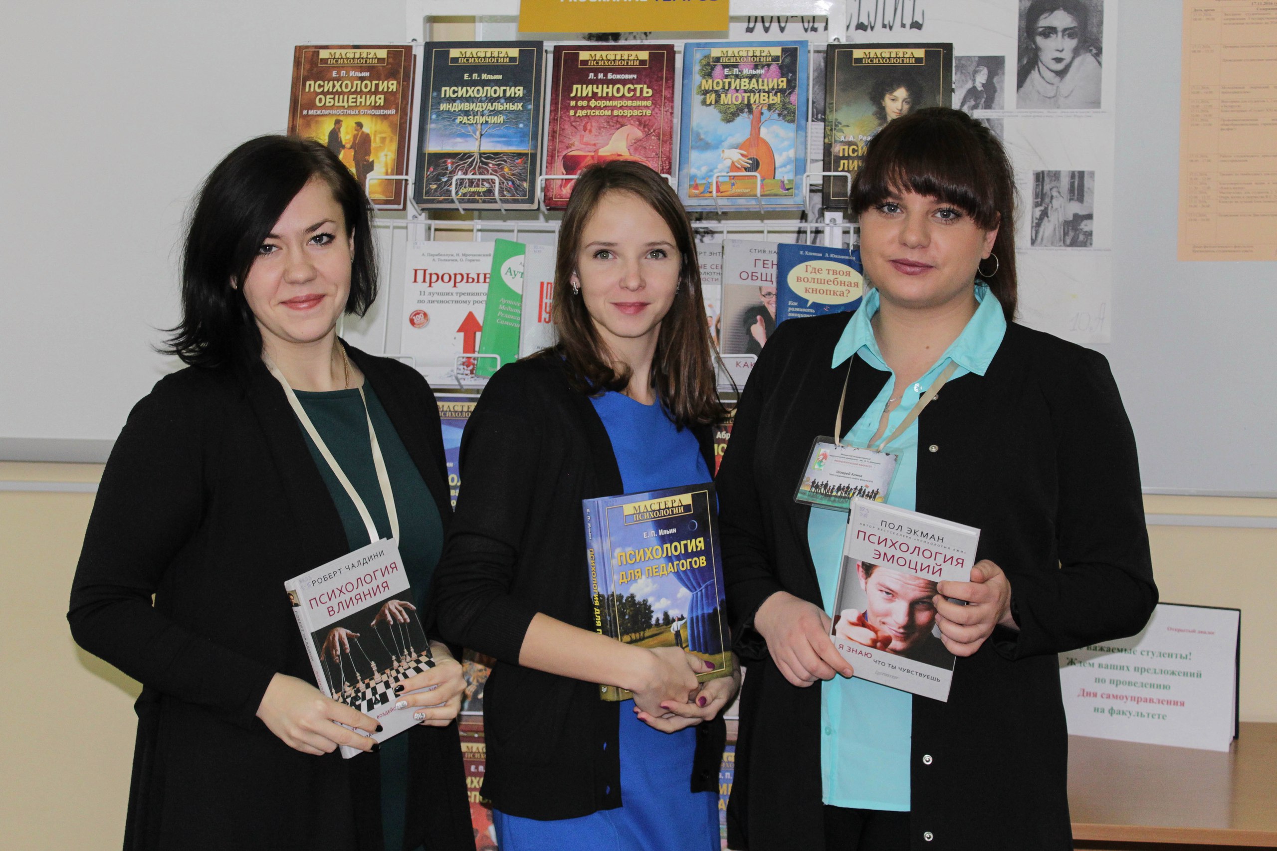 В течение дня для студентов и преподавателей работала выставка научно-методической литературы «Мастера психологии», подготовленная студенческим советом и читальным залом университета.