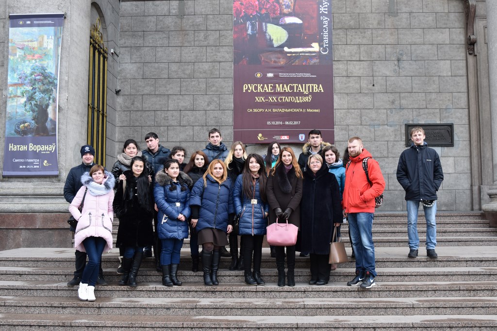 В национально-художественном музее Республики Беларусь студенты познакомились с шедеврами белорусского и русского искусства. Коллекция «Русское искусство XVIII – начала XX в.» открыла своим посетителям полотна И.К. Айвазовского, И.И. Шишкина, Ф.С. Рокотова, К.П. Брюлова, А.И. Куинджи, А.Г. Лысенко, В.А. Тропинина, К.А. Коровьева и др. мастеров живописи.