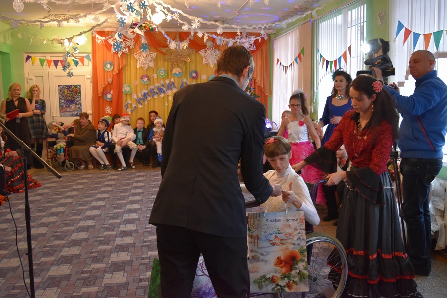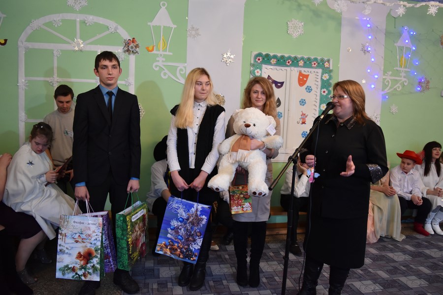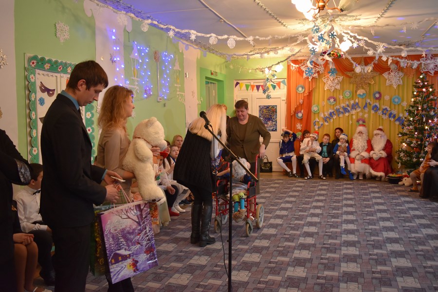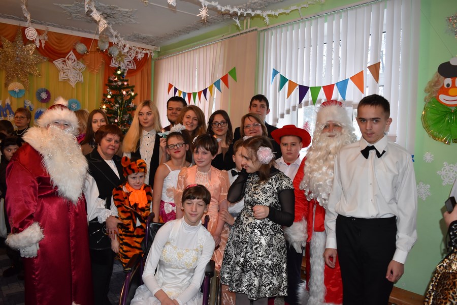 Волонтеры факультета поздравили с Новым 2017 годом Кравченко Светлану, Липского Даниила, Савицкого Дмитрия, Дубенок Валерию, инвалидов-колясочников центра, и вручили им праздничные новогодние подарки. Для кабинета адаптации и социально-бытовой ориентации были приобретены кухонные и хозяйственные принадлежности.