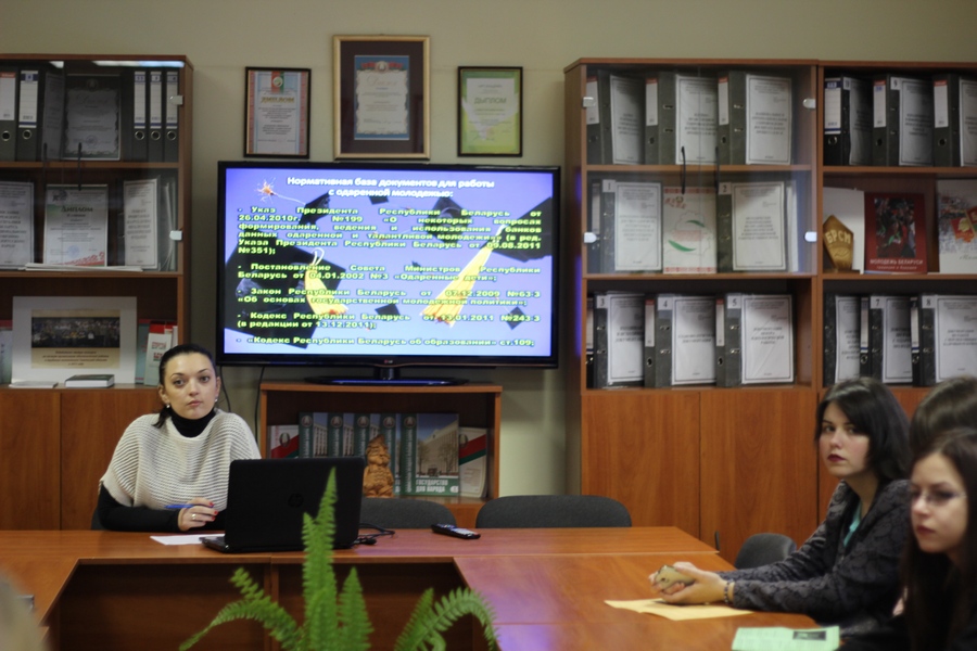 Поддержка одаренной и талантливой молодежи является в Беларуси делом государственной важности, так как достояние народа определяется его творческим потенциалом. В связи с этим на семинаре были освещены вопросы научно-методического сопровождения работы в университете с одаренными и талантливыми студентами. Студенты были ознакомлены с Указами Президента Республики Беларусь по созданию специального фонда Президента Республики Беларусь по социальной поддержке одаренных учащихся и студентов и специального фонда Президента Республики Беларусь по поддержке талантливой молодежи; с основными положениями социально-экономической защиты интересов студентов, а также подробно узнали о том, что такое перспективный кадровый резерв и что нужно для того, чтобы быть в него включенным.