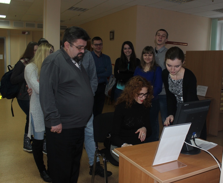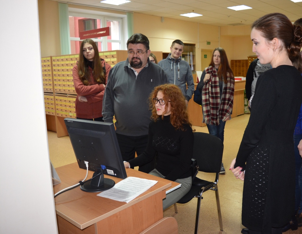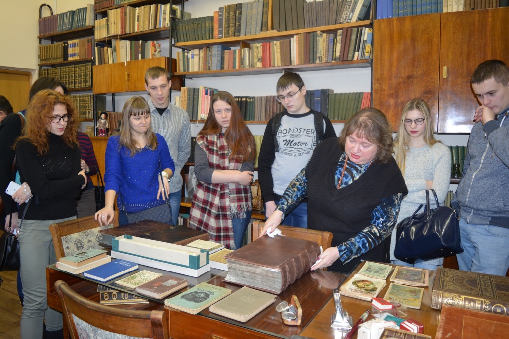 В Центральной научной библиотеке имени Якуба КоласаНАН Беларуси студенты познакомились с историей библиотеки, современными информационными ресурсами и услугами, посетили мемориальный кабинет белорусского писателя Петра Глебки и экспозицию отдела редких книг и рукописей.