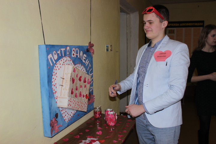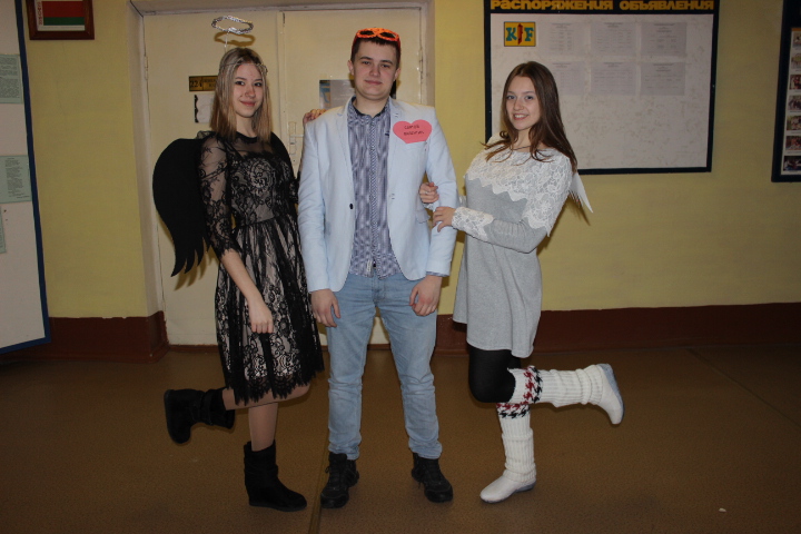 Накануне был объявлен дресс-код для студентов и преподавателей, предписывающий соблюдение красно-розовой цветовой гаммы в одежде, аксессуарах либо наличие «валентинки». С самого утра в холле университета всех студентов и преподавателей встречали два «Ангела» (Мороз Виктория и Сахно Дарья), раздавали «разбитые сердца», обладателям которых нужно было отыскать свою вторую половинку, а помогал им в этом наш «Валентин» (Вага Роман). «Валентин» работал целый день, поздравлял всех сотрудников и преподавателей в деканате и на кафедрах «Английского языка и МПИЯ» и «Немецкого языка и МПИЯ», раздаривая «валентинки» и сладости. В завершении дня «Ангелы» разобрали «Почту ВАЛЕНТИНА», работа которой началась еще за несколько дней до праздника, где каждый желающий мог поздравить своих друзей и любимых. Благодаря «Ангелам» и «Валентину» каждая «валентинка» нашла своего адресата. Также, на протяжении всего дня, на переменах проводились забавные тематические конкурсы (студентками Жизневской Екатериной, Водневой Анжеликой, Изотовой Татьяной, Омелюженко Сабиной), в которых наиболее активные участники были награждены сладкими призами от «Валентина».