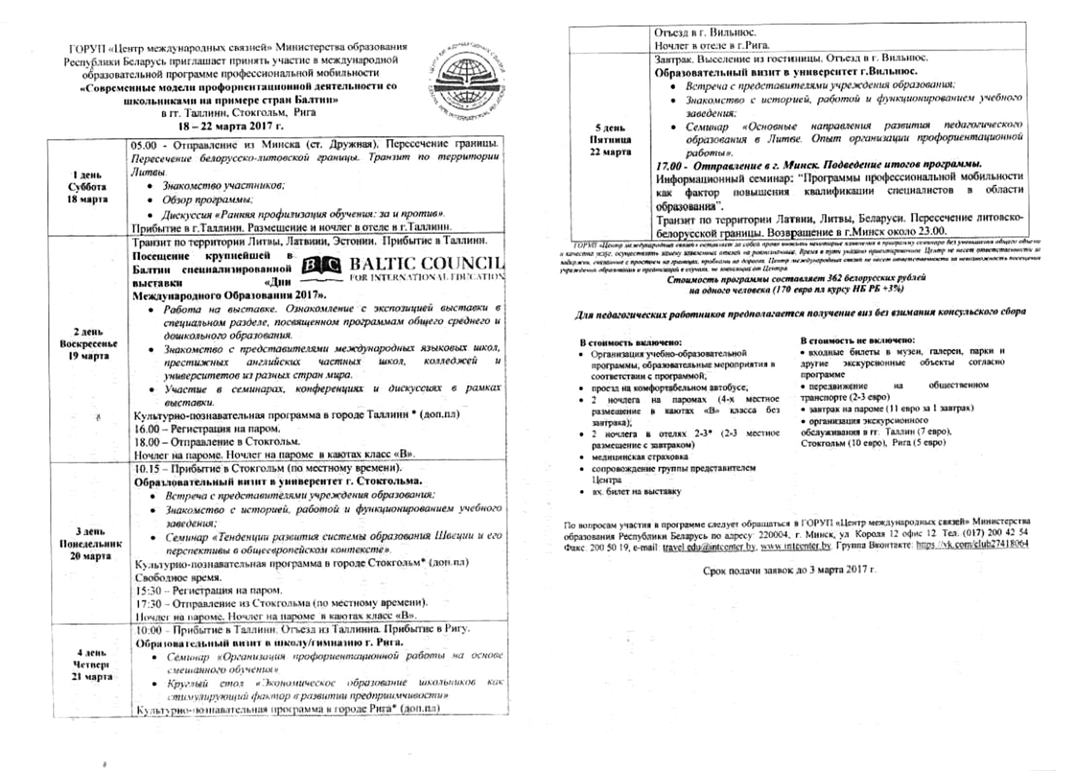 Министерство образования Республики Беларусь информирует об организации международной образовательной программы профессиональной мобильности
