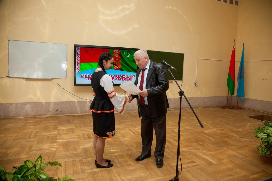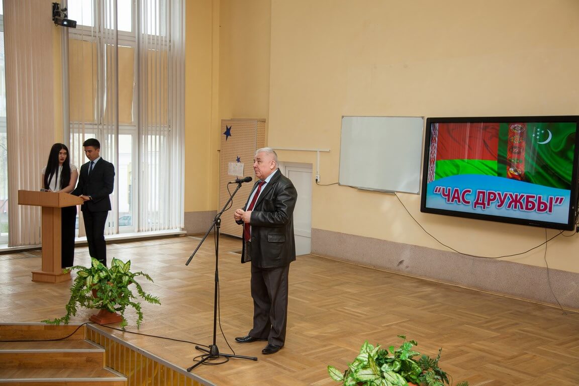 Ректор университета Валентин Васильевич Валетов обозначил итоги официального визита Президента Республики Беларусь в Туркменистан, актуальные вопросы белорусско-туркменского сотрудничества. Отметил, что в университете создаются благоприятные условия для взаимодействия белорусских и туркменских обучающихся, формирования у них поликультурного мировоззрения, содействия укреплению атмосферы дружбы и интернационального взаимопонимания. Создаются условия для проявления учебной, научной, творческой и общественной активности туркменских обучающихся.