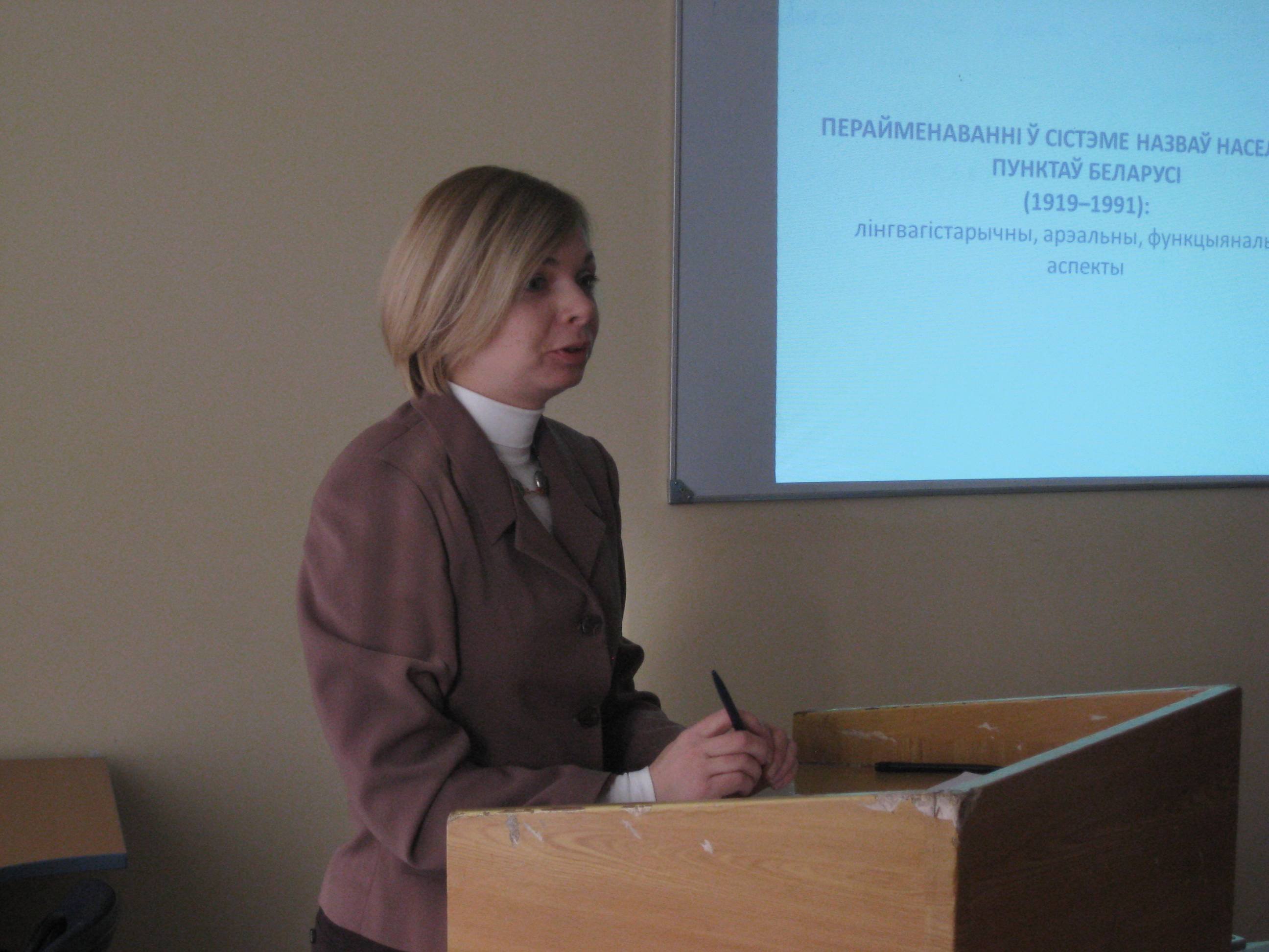 Актыўны ўдзел у рабоце семінара прынялі выкладчыкі філалагічнага факультэта, аспіранты, магістранты, студэнты. З дакладам «Перайменаванні ў сістэме назваў населеных пунктаў Беларусі (1919-1991): лінгвагістарычны, арэальны аспекты» выступіла выкладчык кафедры англійскай мовы і МВЗМ Кавалёва А.В. У ходзе навуковай дыскусіі абмяркоўваліся праблемы перайменаванняў тапонімаў, пытанні стандартызацыі нацыянальнай тапанімічнай сістэмы з улікам нацыянальнай мадэлі і формы тапонімаў.