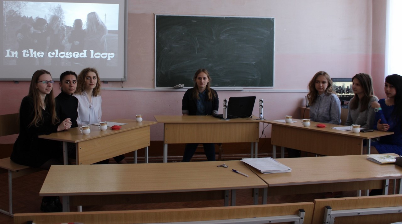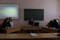 На занятие были приглашены студенты 2 курса, а также преподаватели кафедры английского языка и МПИЯ. Проект начался с программы “Evening Kate”. Две команды (Жевнеренко Ольга, Ючко Ольга, Пацук Екатерина — 1 команда и Кузьменцова Евгения, Голик Анжелика, Кудина Виктория — 2 команда) участвовали в дискуссии, координируемой ведущей — студенткой 3 курса, 1 группы, 2 подгруппы Жук Ниной. Живая беседа с постановкой проблемных вопросов и активными поисками ответов на них сменилась показом короткометражного фильма “ In the close loop”, в котором студенты, перевоплотившись в «героев» Чернобыля, постарались передать психологическое состояние как очевидцев, так и ликвидаторов последствий катастрофы, продемонстрировав достаточно высокий уровень владения иностранным языком (английским). После просмотра фильма в аудитории на некоторое время воцарилась тишина: настолько все были под впечатлением от увиденного.