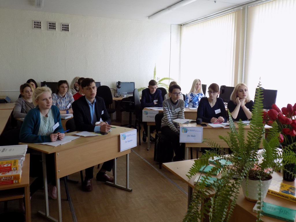 В рамках практического занятия студентами были представлены результаты разработки образовательного проекта «Die Mission des modernen Lehrers» («Миссия современного учителя»). Студенты работали в составе микрогрупп (лингвисты, исследователи в области педагогики, художники, эксперты). Каждая из групп разрабатывала свою тематическую рубрику. «Исследователи в области педагогики» охарактеризовали профессионально важные качества педагога. «Лингвисты» представили результаты работы со словарями. Они создали тематические словари по рубрикам «учителя, учить» и «ученики, обучаться». Творчески, в жанре шаржа «Наши любимые учителя: какие они?», презентовали свои результаты «художники». Активно анализировали работу микрогрупп «эксперты». В конце занятия они подвели итоги по теме и объективно оценили работу своих коллег в рамках образовательного проекта.