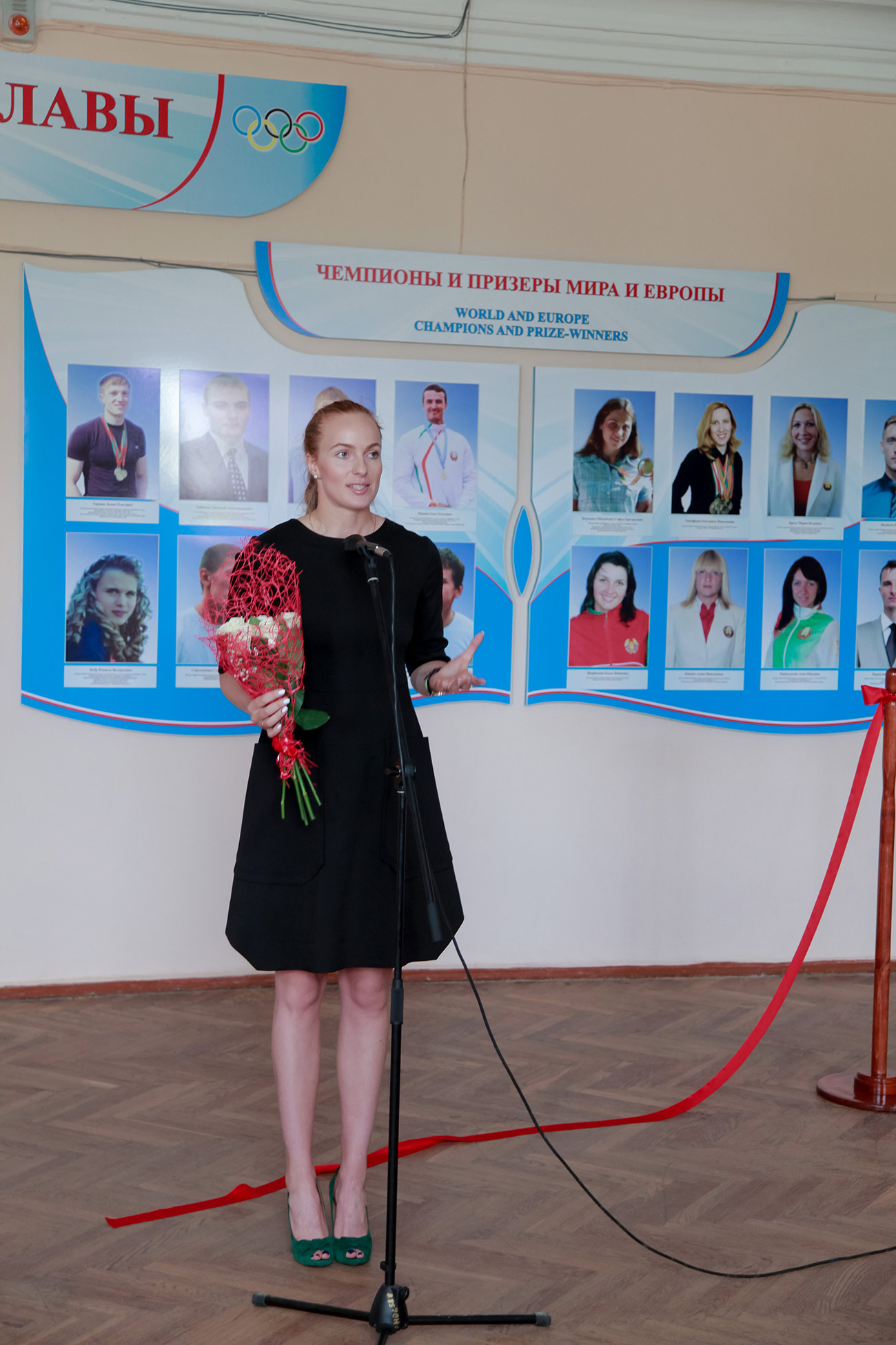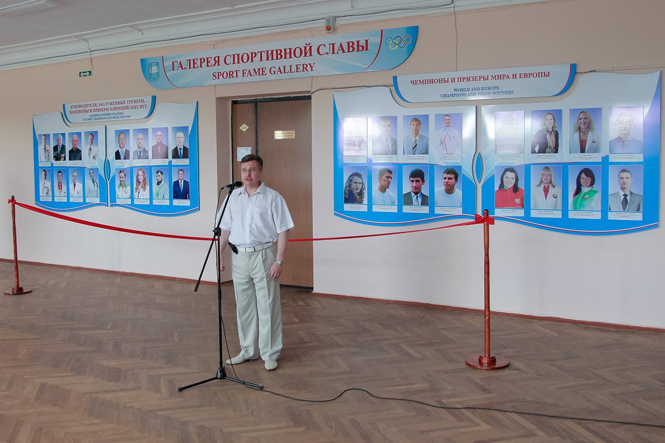 На торжественном открытии стенда выступил проректор по воспитательной работе, кандидат педагогических наук, доцент Сергей Николаевич Щур, который отметил, что студенты университета составляют основу различных сборных команд и представляют Республику Беларусь на международных соревнованиях различного уровня. Говорил о том, что под четким руководством ректора университета Валентина Васильевича Валетова реализуется две основные цели – развитие массового студенческого спорта и популяризация здорового образа жизни в целом. О том, что наши студенты-спортсмены и в дальнейшем будут достигать высоких результатов, достойно представлять Республику Беларусь на Олимпийских играх, чемпионатах мира и Европы благодаря успешно проводимой системной работе в университете, связи с федерациями по видам спорта, работе специалистов, планирующих и достигающих высоких спортивных результатов.