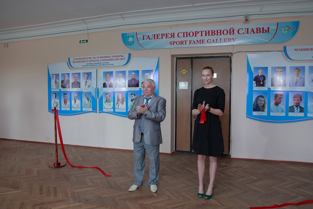 Почетное право открытия стенда «Галерея спортивной славы» было предоставлено ректору университета Валентину Васильевичу Валетову и Маргарите Махневой.