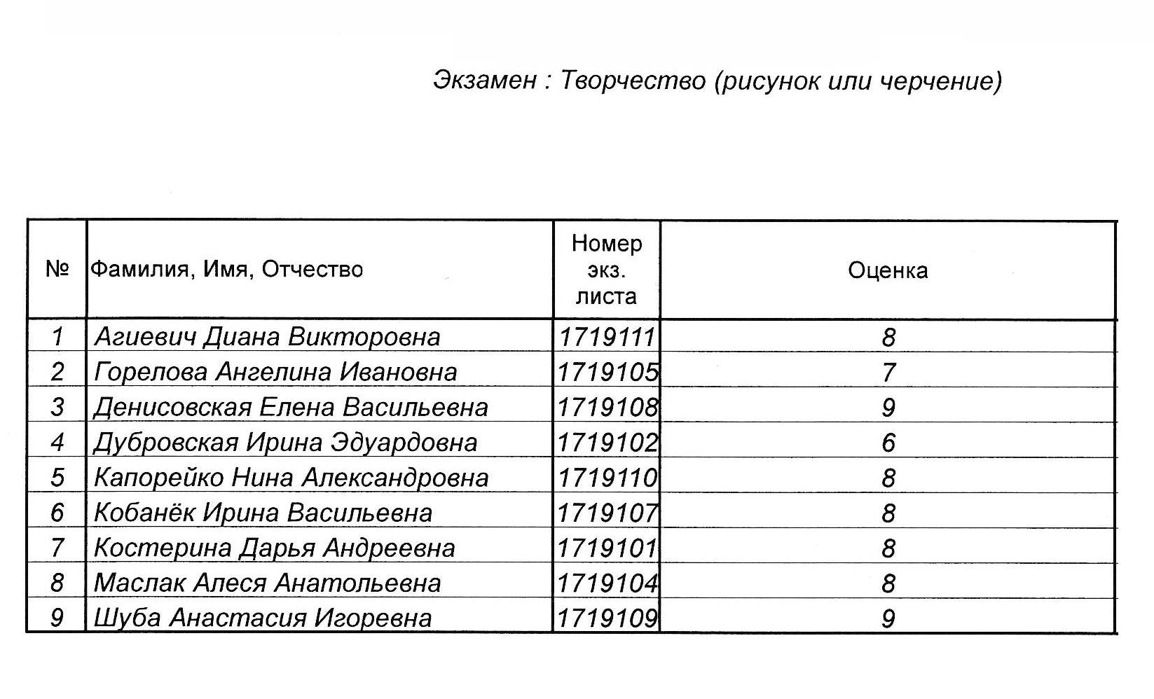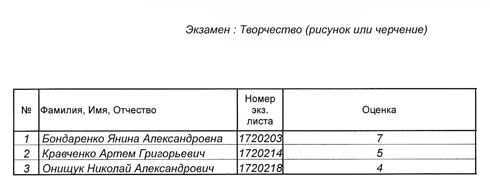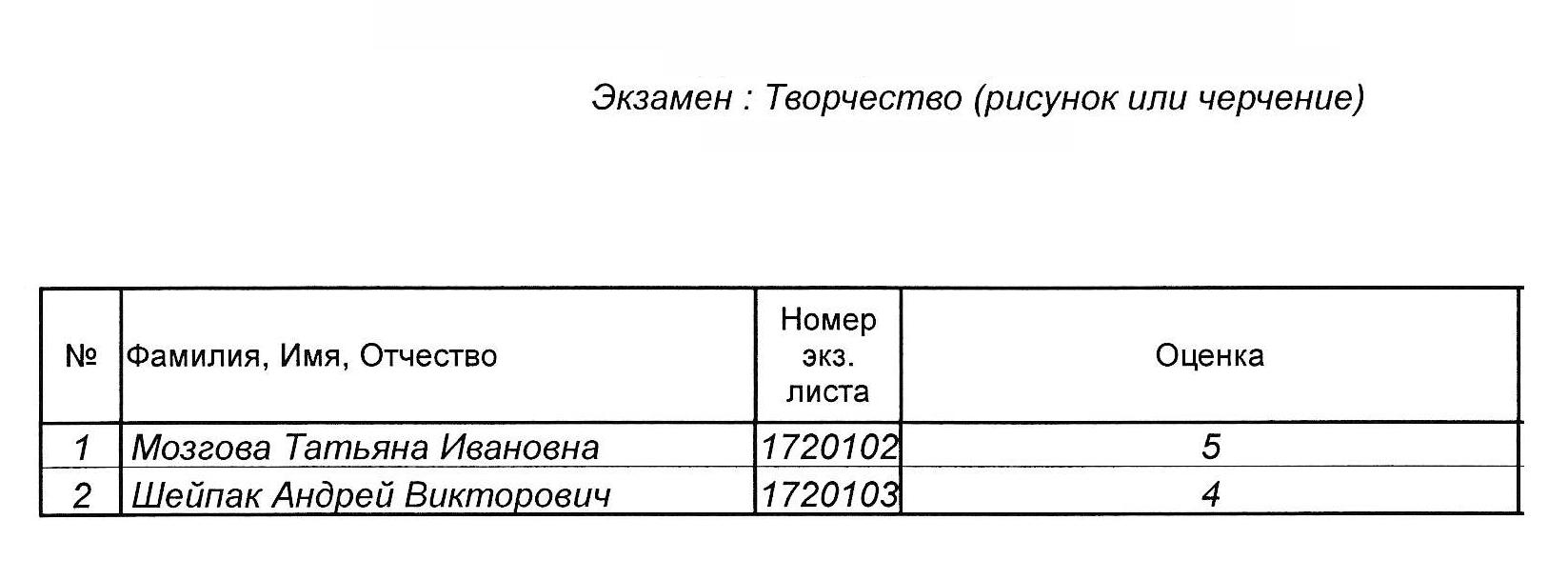 Результаты вступительных испытаний
