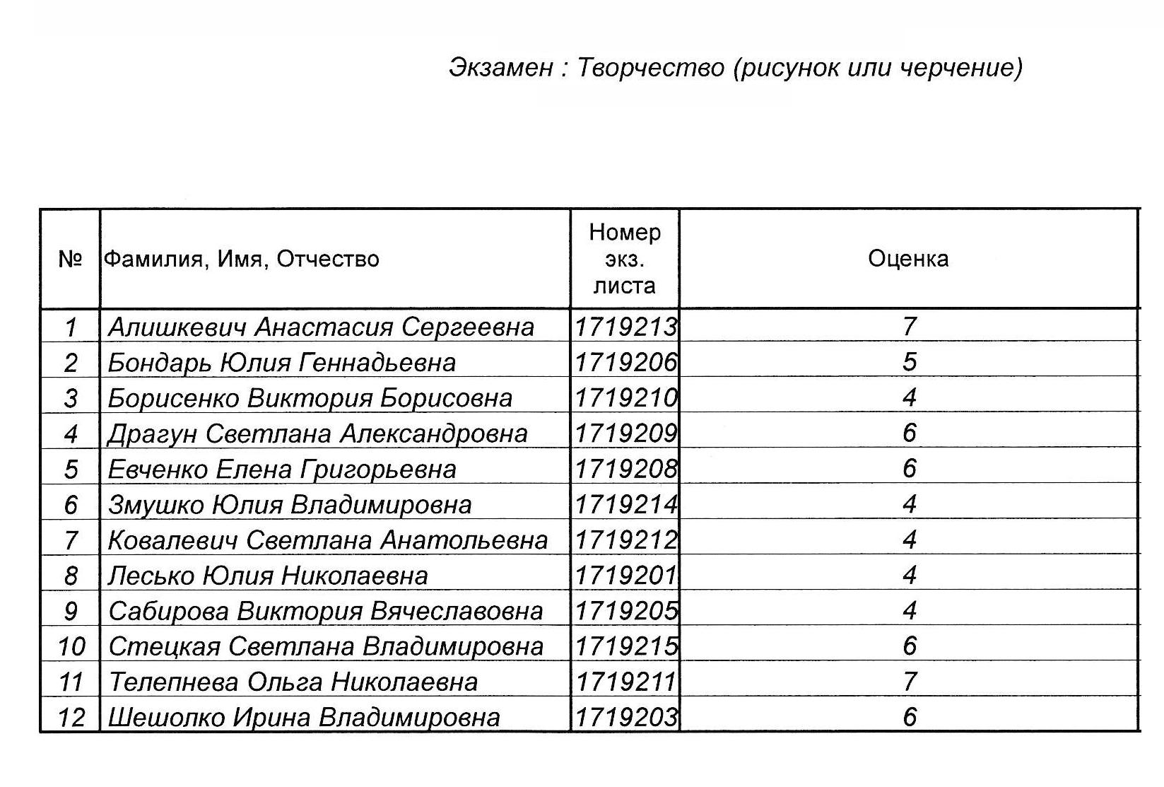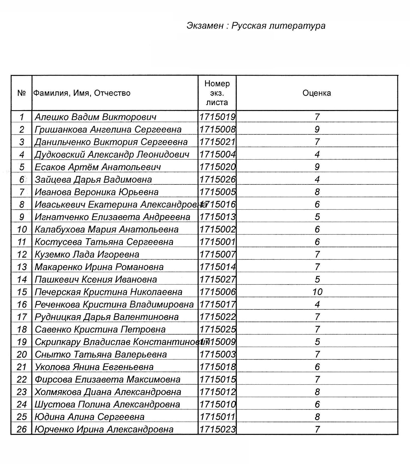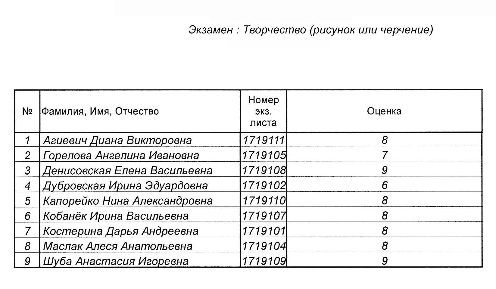 Результаты вступительных испытаний