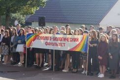 По традиции, первокурсникам были вручены символы студенческой жизни: Ключ знаний и Студенческий билет. Студентка 1 курса филологического факультета Мария Кравчук, набравшая наибольшее количество баллов – 373, по результатам централизованного тестирования, приняла эти символы студенческой жизни из рук выпускницы филологического факультета 2017 года, стипендиата специального фонда Президента Республики Беларусь по социальной поддержке одаренных учащихся и студентов Колосовской Илоны, и от лица всех первокурсников пообещала с честью нести высокое звание «Студент Мозырского государственного университета имени Ивана Петровича Шамякина».