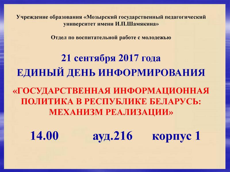 ЕДИНЫЙ ДЕНЬ ИНФОРМИРОВАНИЯ