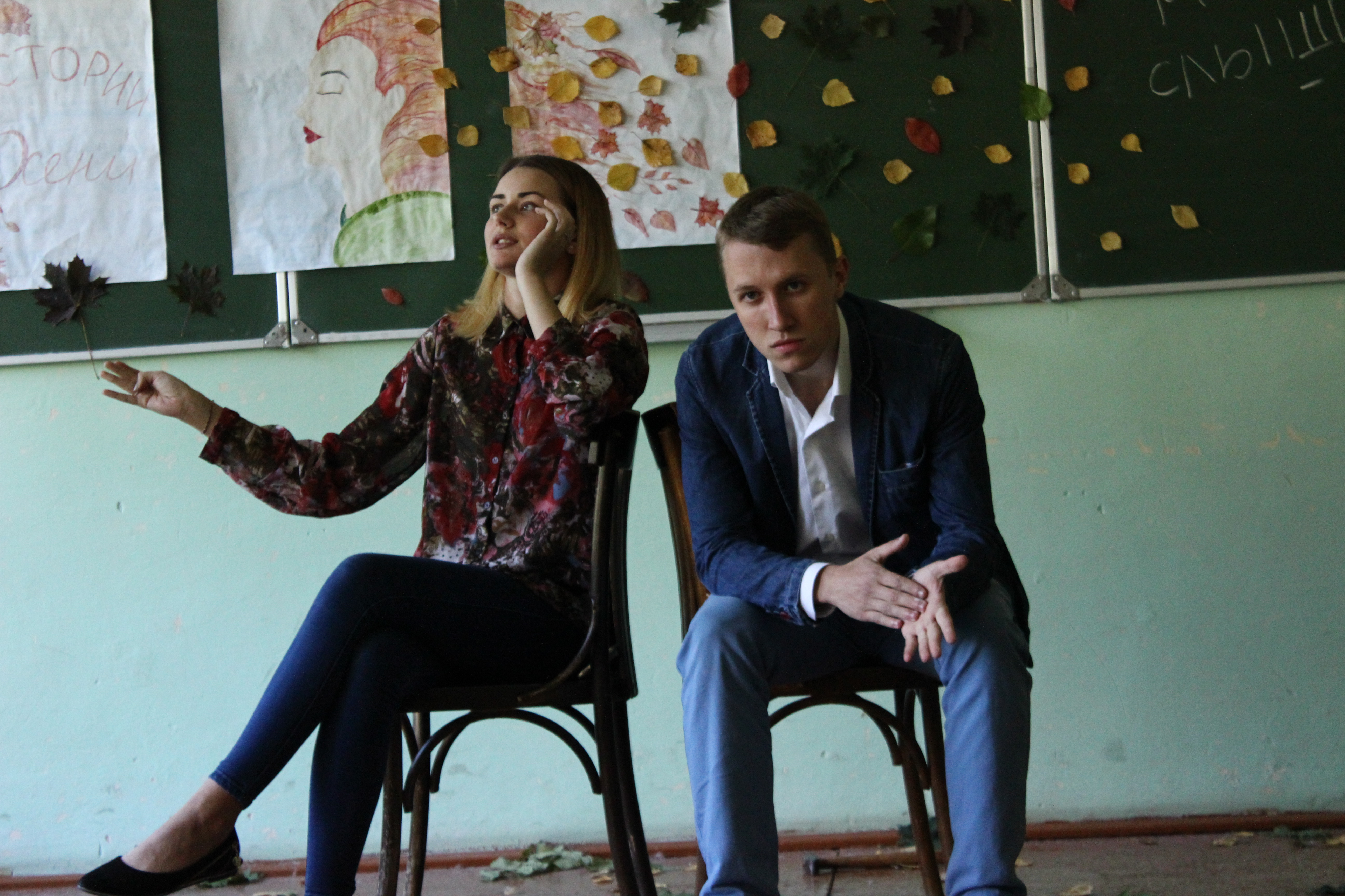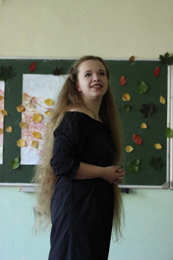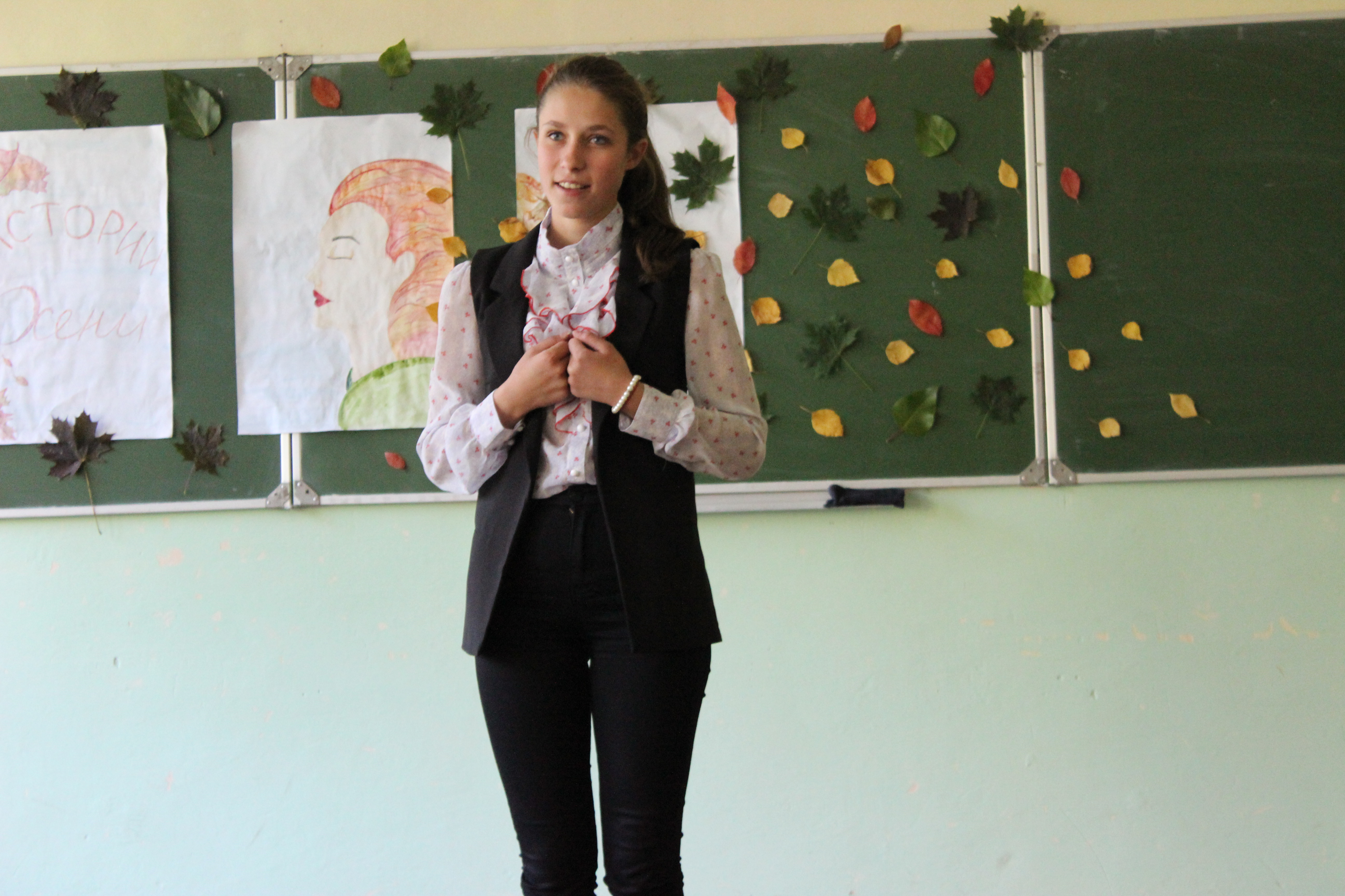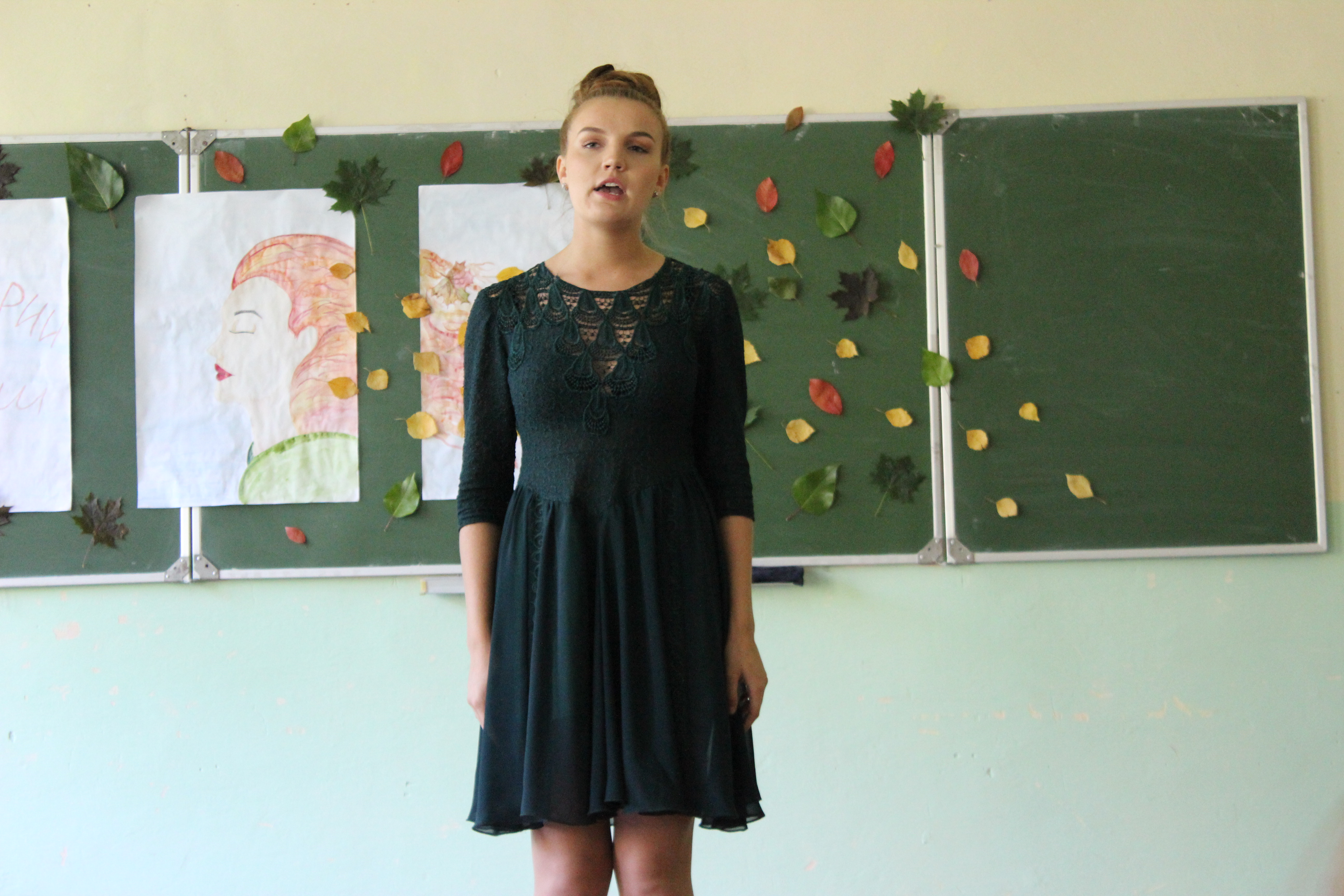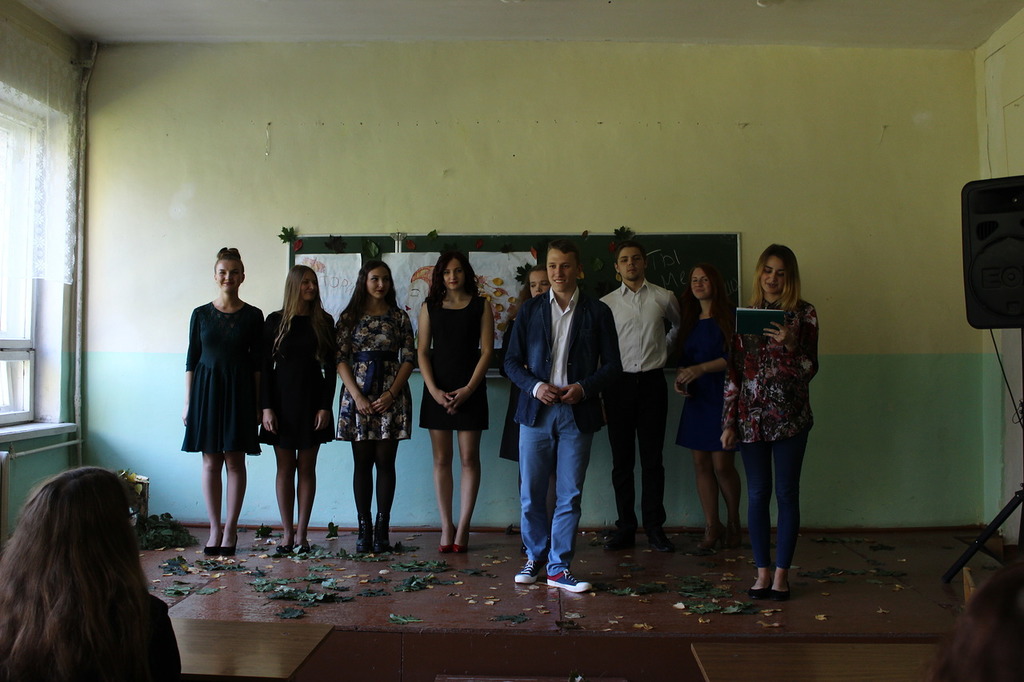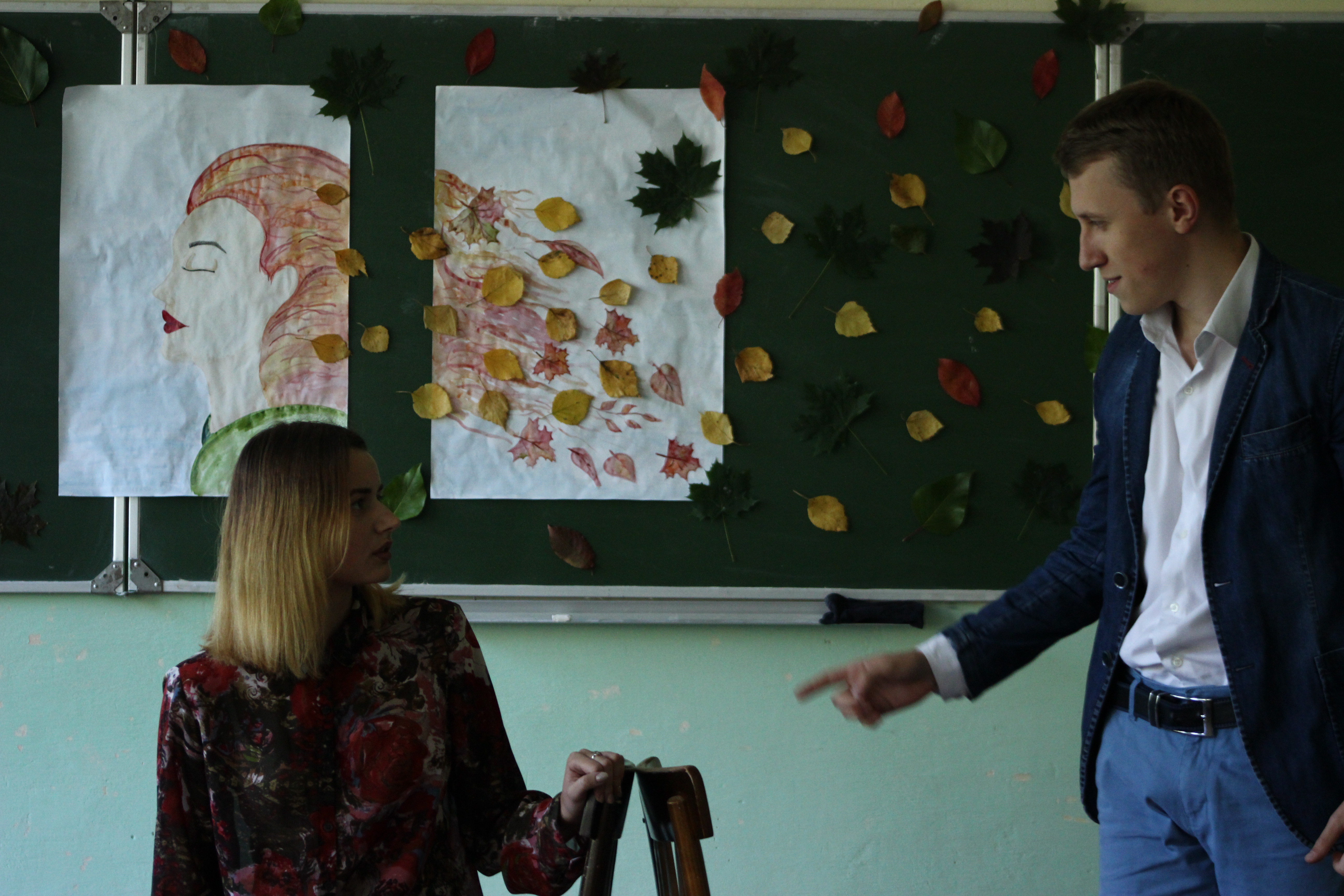 Накануне светлого праздника ребята решили по-особенному поздравить своих учителей: не звучало привычных поздравлений и пожеланий, не было ведущих. Концерт, изначально задуманный как осенние новеллы о любви, предполагал освобождение от стандартных рамок. «Истории Осени» в стихах были рассказаны Змушко Кристиной, Гриневой Ольгой, Андреевой Анастасией, Изотовой Татьяной. Проникновенное пение Лахманковой Анастасии под аккомпанемент фортепиано (Рябцева Мария), акапельное исполнение любимых осенних композиций Полуян Галины, Яна Ковалева и особенно Светогор Павлы, выступившей вместе с вальсирующим дуэтом Лахманковой Анастасии и Колоса Эдуарда – создали атмосферу легкой грусти и лирического настроения. Кульминацией выступления стала яркая актерская игра Полуян Галины и Ковалева Яна фрагмента пьесы «Песня на два голоса для глухих» в стиле «еще раз про любовь». Яркая, наполненная драматизмом история о встрече, расставании, страхе потери и увядании чувств, прожитая ребятами на сцене, вполне реальна и за ее пределами, поэтому зрители могли не просто посмотреть на себя со стороны, но и где-то посмеяться, а где-то и задуматься над правильностью своих поступков.