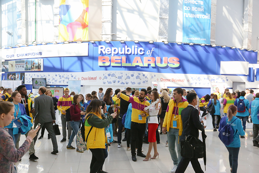 На протяжении трех дней в главном медиа-центре работали выставки всех 188 стран-участниц. Каждая страна представляла на площадках свою культуру и свои национальные особенности. Многие участники фестиваля неоднократно отмечали, что именно стенд Республики Беларусь - один из самых лучших и креативных.