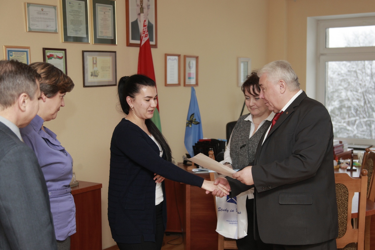Студентка филологического факультета нашего университета Ягмурова Умида приняла активное участие, подготовив конкурсную работу «Я – студент МГПУ!». Оформить материалы к международному видеоконкурсу помогли сотрудники воспитательного отдела по работе с молодежью совместно со специалистами отдела информационных технологий и ИД. Видеоролик был отмечен Благодарностью ГУО «Республиканский институт высшей школы», которая в торжественной обстановке была вручена Ягмуровой Умиде ректором университета Валетовым В.В.