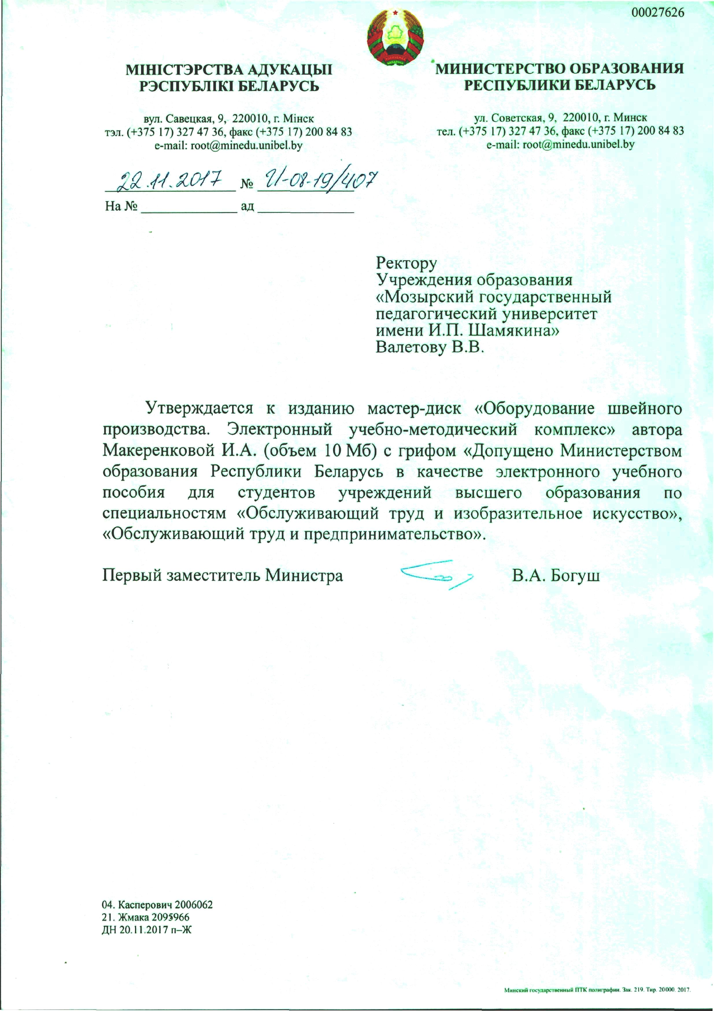 МАКЕРЕНКОВА ИНЕССА АНАТОЛЬЕВНА ПОЛУЧИЛА ГРИФ МИНИСТЕРСТВА ОБРАЗОВАНИЯ РЕСПУБЛИКИ БЕЛАРУСЬ НА ЭЛЕКТРОННЫЙ УЧЕБНО-МЕТОДИЧЕСКИЙ КОМПЛЕКС! Подробности Опубликовано 11.12.2017 13:12 ЖЕЛАЕМ УСПЕХОВ В ДАЛЬНЕЙШЕЙ ИЗДАТЕЛЬСКОЙ ДЕЯТЕЛЬНОСТИ!!!