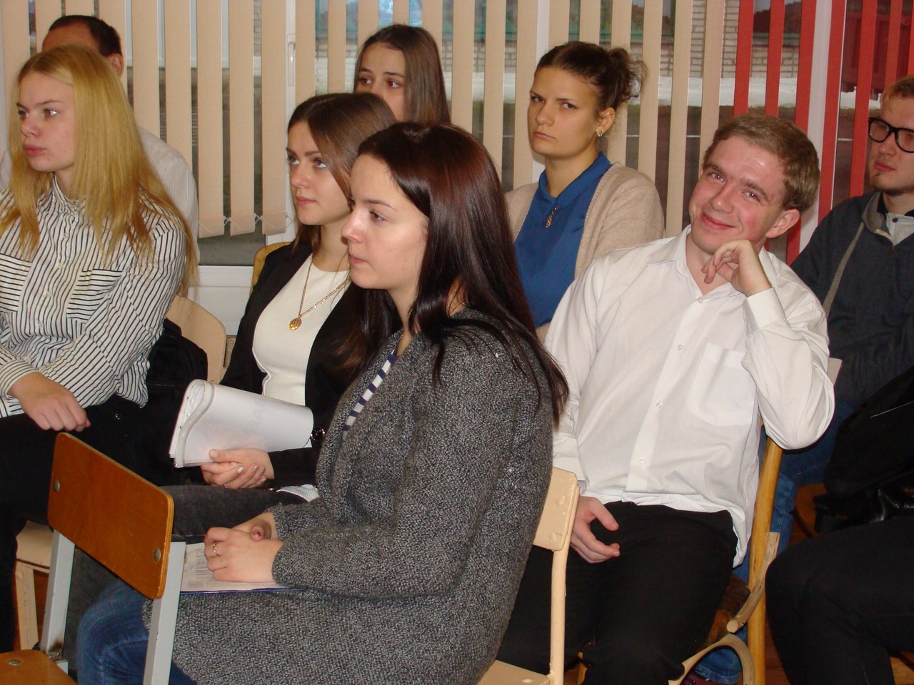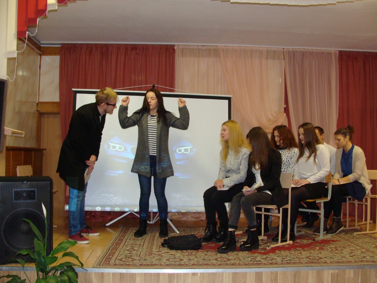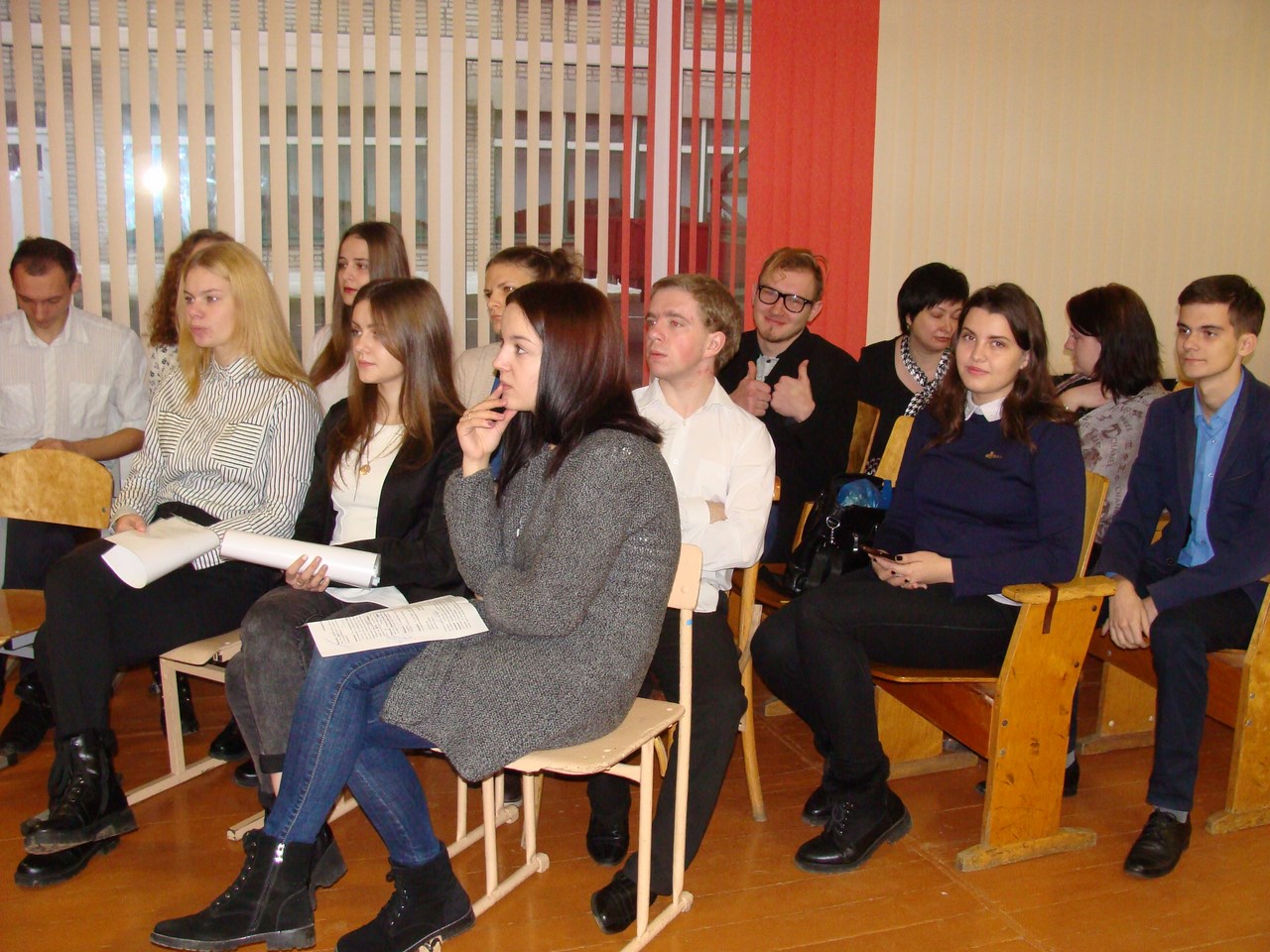 Студенты физико-инженерного факультета Маскальчук Алина, Никифоров Андрей, Жук Марина, Гайкевич Алена, Румянцев Вадим, Боскин Дмитрий, Сытько Ирина, Хамутовская Диана, Политунова Нина, Томашевич Максим подготовили и показали концертную программу. Зал с радостью поддерживал вокалистов Ляшука Андрея, Полын Анну, Захарову Кристину, все погрузились в любимые мелодии и хлопали в такт исполнителям. Заразительный смех вызвали юмористические сценки на студенческую тематику «Три девицы под окном» и «Страшный сон преподавателя». И, конечно же, финальная песня «С Новым годом», исполненная Полын Анной, подарила море позитивных эмоций и хорошего настроения.