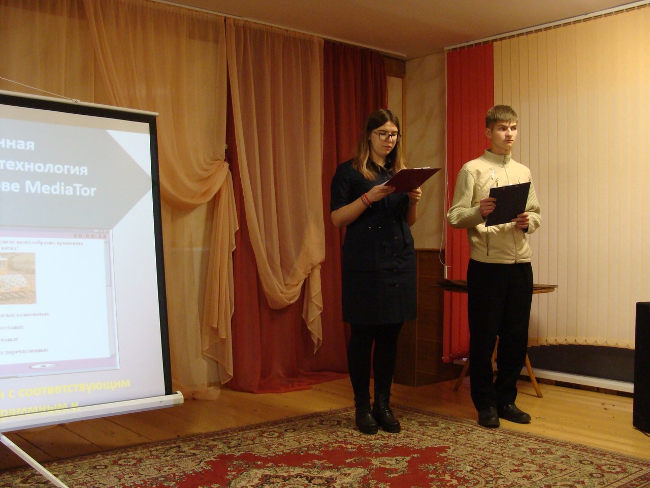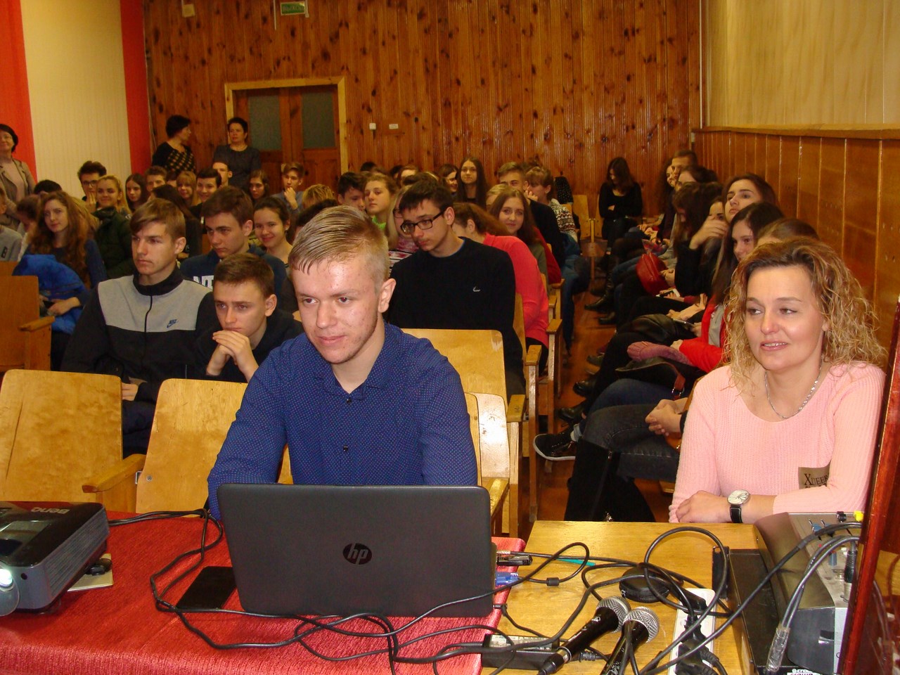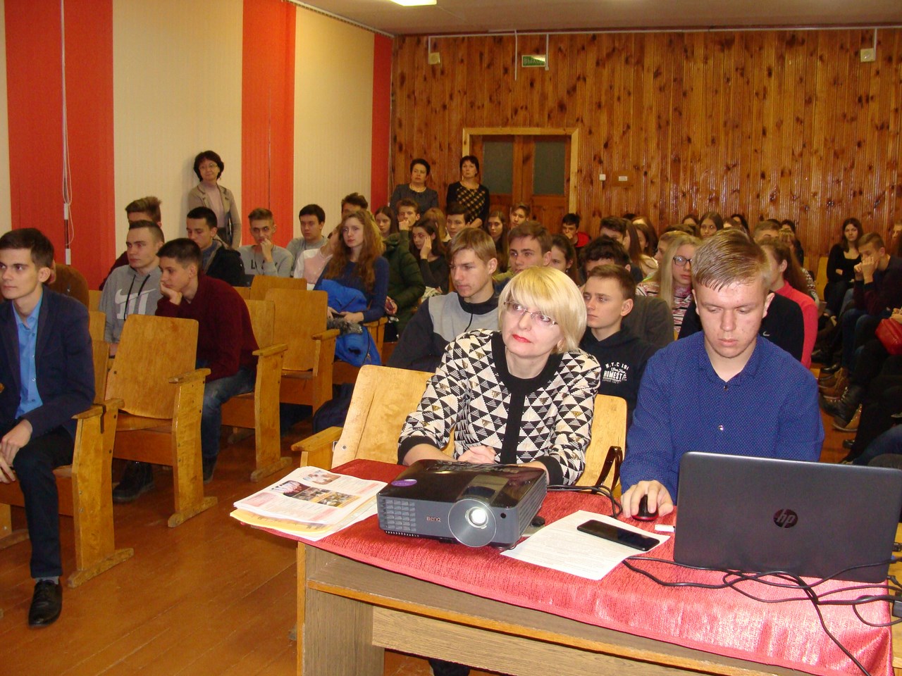 На мероприятии студенты третьего курса Цык Анастасия и Чегаев Евгений рассказали старшеклассникам об истории физико-инженерного факультета МГПУ им. И.П. Шамякина, о научных школах, функционирующих на факультете, о специальностях, по которым ведется подготовка в университете, проходных баллах, возможностях и перспективах трудоустройства.