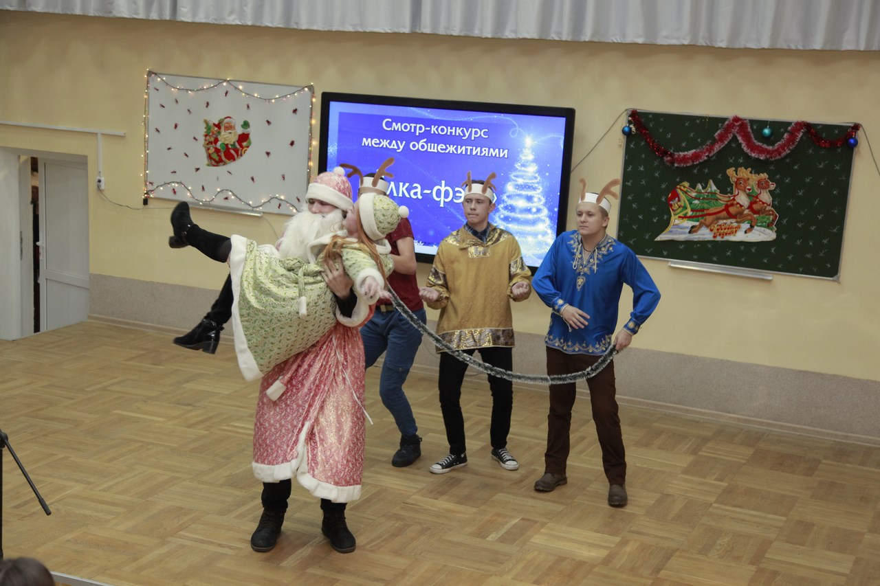 В номинации «Дед Мороз и Снегурочка-2017» победу одержала команда общежития №1, в номинации «Лучшая новогодняя ёлка» - команда общежития №2, в номинации «Лучшая сюжетно-игровая программа» - команда общежития №3.
