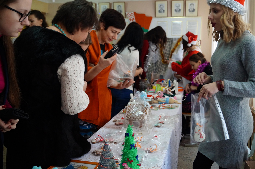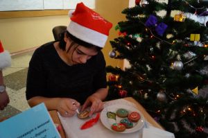 В рамках благотворительной выставки-ярмарки для гостей праздника работала Мастерская Деда Мороза и Снегурочки, где можно было не только понаблюдать за работой студентов, но и самим принять участие в мастер-классах по изготовлению новогодних сувениров, попрактиковаться в росписи имбирных пряников, складывании салфеток для сервировки новогоднего стола!