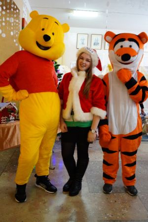Созданию новогодней атмосферы способствовало праздничное оформление холла, добрые новогодние мелодии, звучащие на мероприятии, яркая уютная тематическая фотозона, созданная организаторами выставки-ярмарки. Особый интерес вызвала праздничная новогодняя фотозона, где главными действующими лицами, конечно же, стали Дед Мороз и Снегурочка, ростовые куклы в костюмах мультипликационных героев, которые встречали гостей, приветствуя их, а также предлагали сделать совместное фото на память.