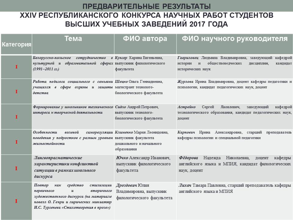 XXIV Республиканский конкурс научных работ студентов (2017 год)