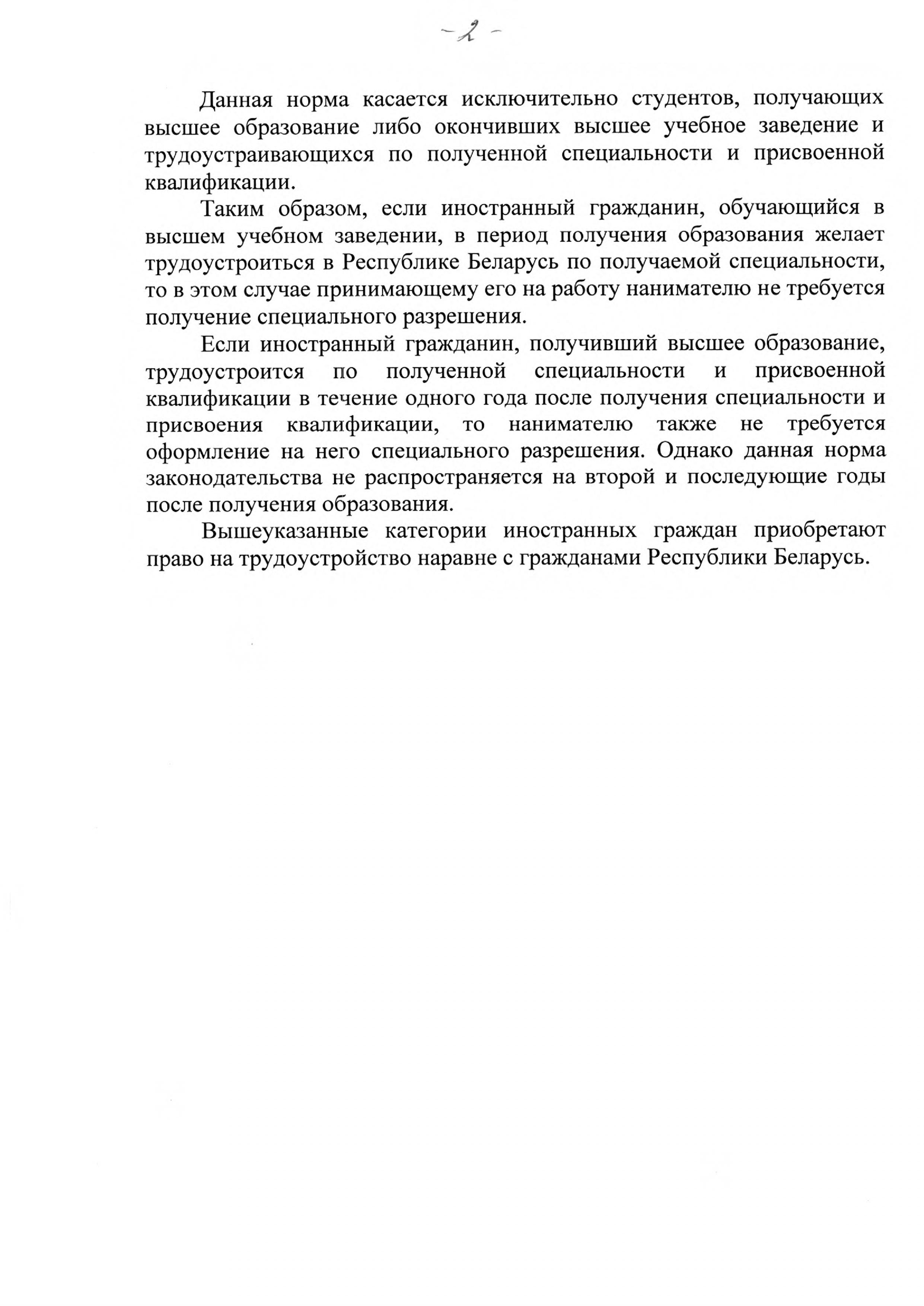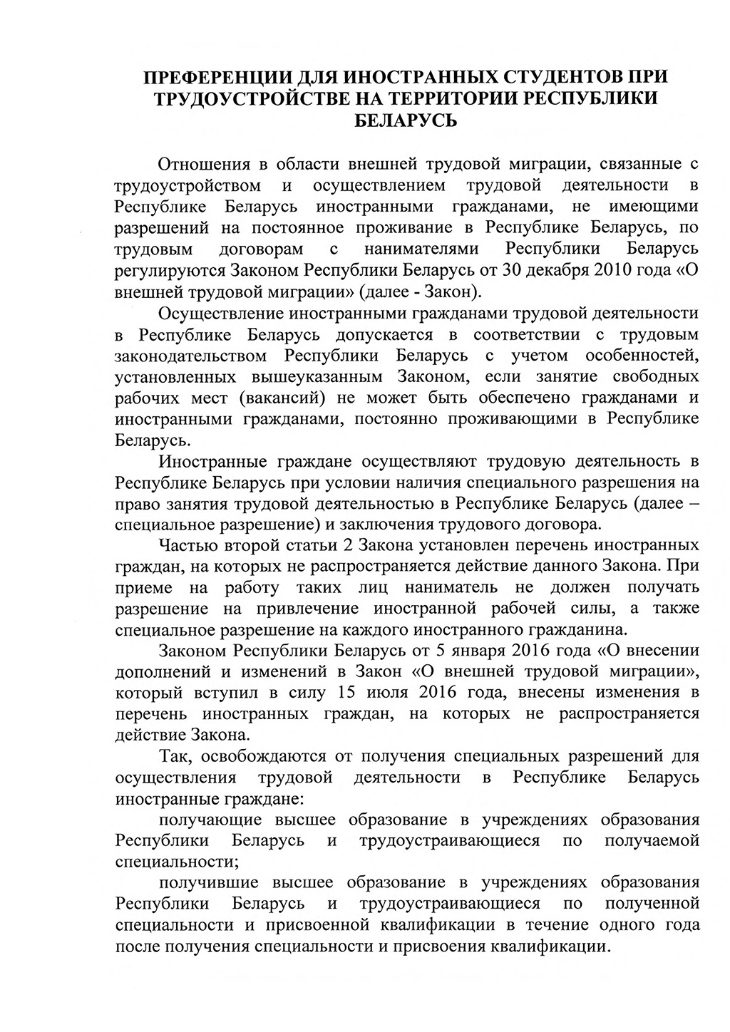 Преференции для иностранных студентов при трудоустройстве на территории Республики Беларусь
