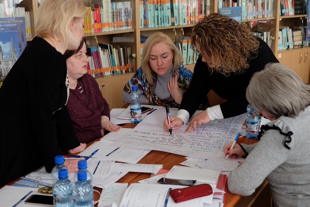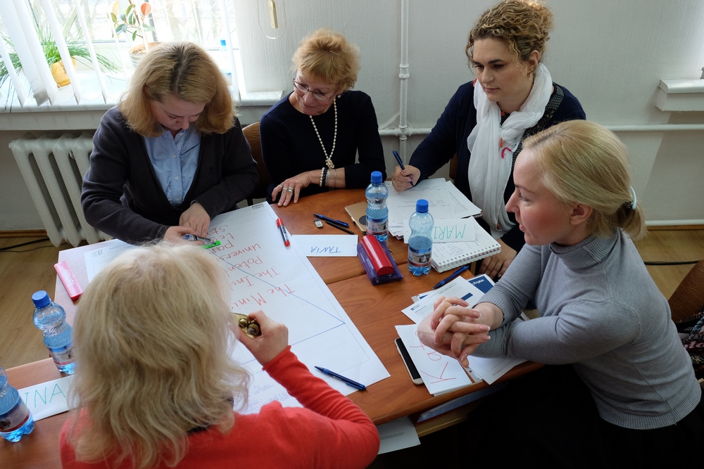Групповые дискуссии управлялись тренером при помощи постановки вопросов и тем для обсуждения, завершались демонстрацией подготовленных в дискуссии совместных проектов-плакатов. Такая форма активного обучения стимулирует передачу знаний и развитие умений и навыков. Основным методом обучения был мозговой штурм. Известно, что мозговой штурм – один из наиболее эффективных методов стимулирования творческой активности. Позволяет найти решение сложных проблем путём применения специальных правил: сначала участникам предлагается высказывать как можно больше вариантов и идей, затем из общего числа высказанных идей отбираются наиболее удачные, которые могут быть использованы на практике. Инструментом для стимулирования обмена информации была избрана фасилитация.Фасилитация позволяет ускорить процессы осознания, стимулировать групповую динамику. Тренер в ходе фасилитации помогает процессу группового обсуждения, направляет этот процесс в нужное русло.