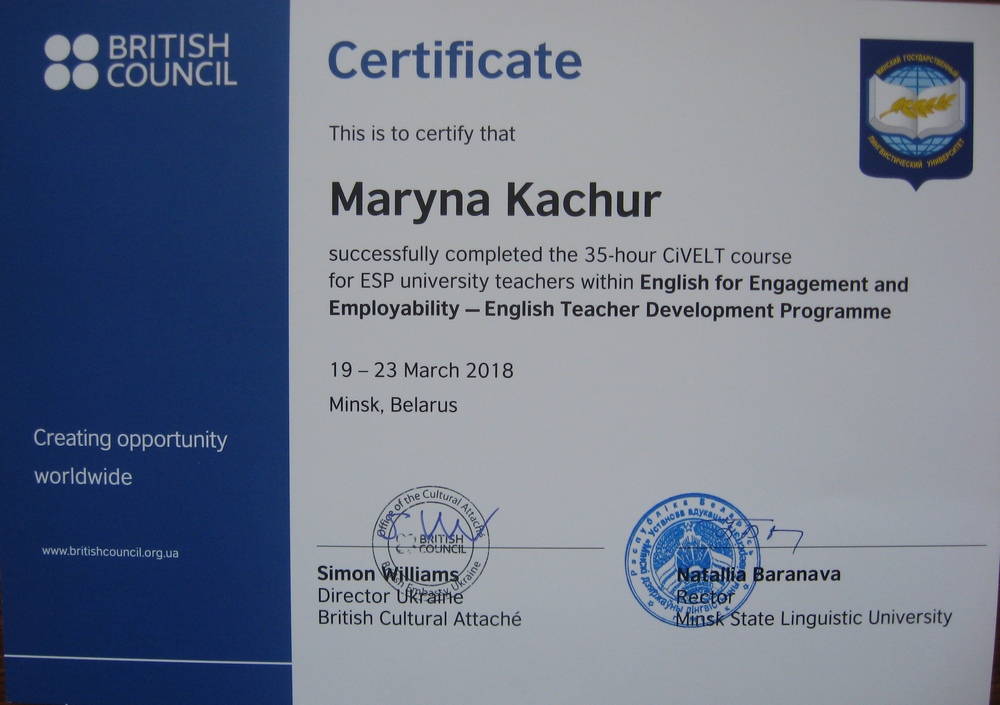 Торжественное закрытие проекта состоялось 23 марта 2018 года. На закрытии присутствовали и выступили проректор по учебной работе МГЛУ Елена Петровна Бетеня, заместитель Главы миссии Посольства Великобритании в Республике Беларусь господин Иен Фокс, главный специалист отдела дополнительного образования взрослых Министерства образования Республики Беларусь Наталья Витольдовна Самусева, директор Британского Совета в Украине господин Саймон Вильямс, британские преподаватели David Watkins и Mark Searle.