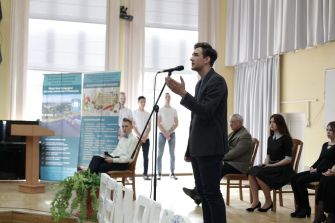 З прывітальным словам да гасцей універсітэта звярнуўся прарэктар па навуковай рабоце, кандыдат фізіка-матэматычных навук, дацэнт Валерый Мікалаевіч Наўныка, які адзначыў, што сэрцам беларускага Палесся, яго навуковым, культурным і інтэлектуальным цэнтрам з’яўляецца Установа адукацыі “Мазырскі дзяржаўны педагагічны універсітэт імя І.П. Шамякіна”. Студэнты і выкладчыкі нашай навучальнай установы шчыра радыя вітаць тых, хто выдатна ведае нацыянальную мову і літаратуру, айчынную і сусветную гісторыю.