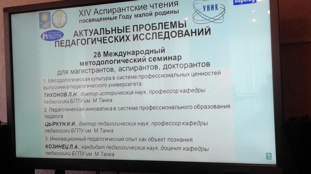 В свою очередь кандидат педагогических наук, доцент кафедры педагогики ФСПТ БГПУ Лидия Александровна Козинец выступила с докладом «Инновационный педагогический опыт как объект познания».