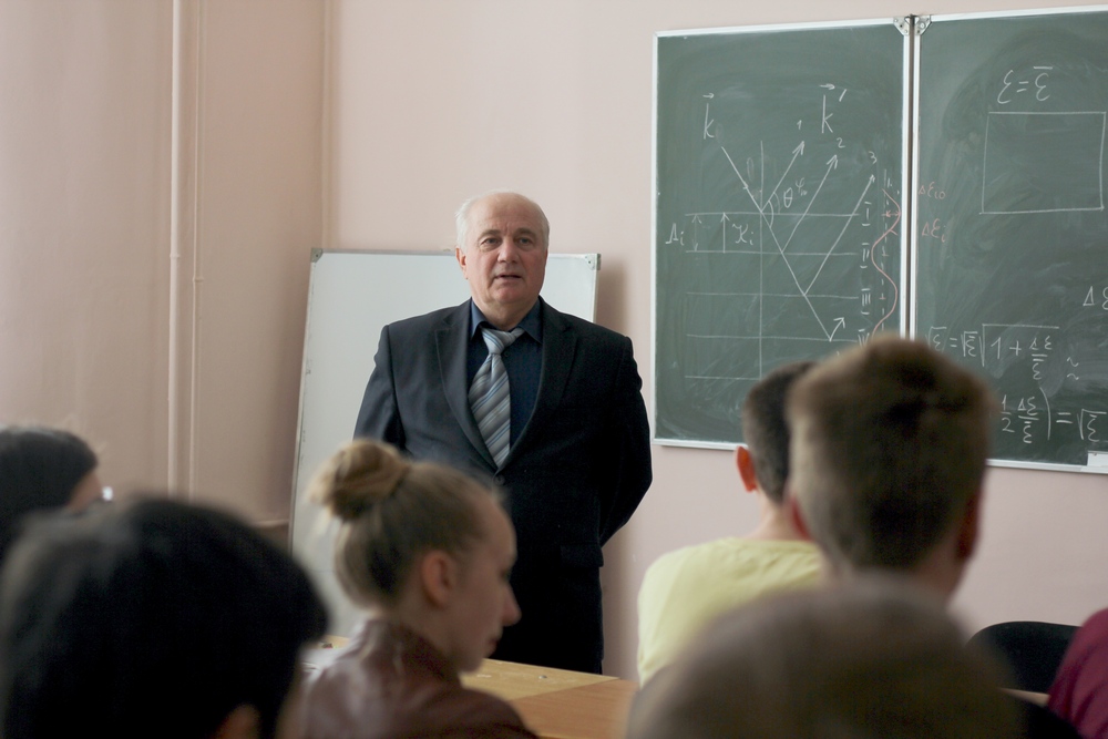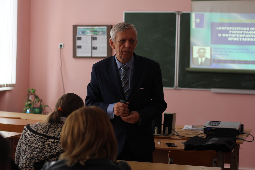 Перед студентами 2 курса специальности «Компьютерная физика» выступил профессор кафедры физики и математики, доктор физико-математических наук, профессор Кулак Геннадий Владимирович. Он ознакомил студентов с результатами работы научной школы «Акустооптика анизотропных кристаллов и оптических волноводов»: создана теория акустооптического взаимодействия в гиротропных монокристаллах и оптических волноводах со сложной анизотропией оптических свойств, включая естественную анизотропию кристаллов и волноводных структур, анизотропию, индуцированную внешним электрическими полем, и фоторефрактивный эффект.