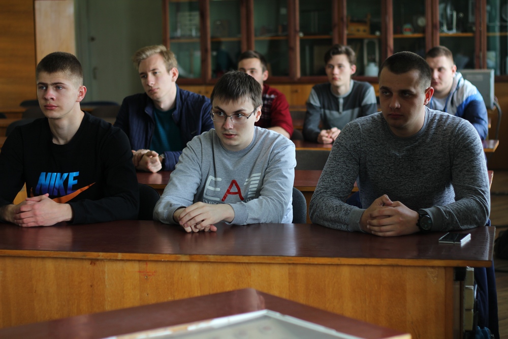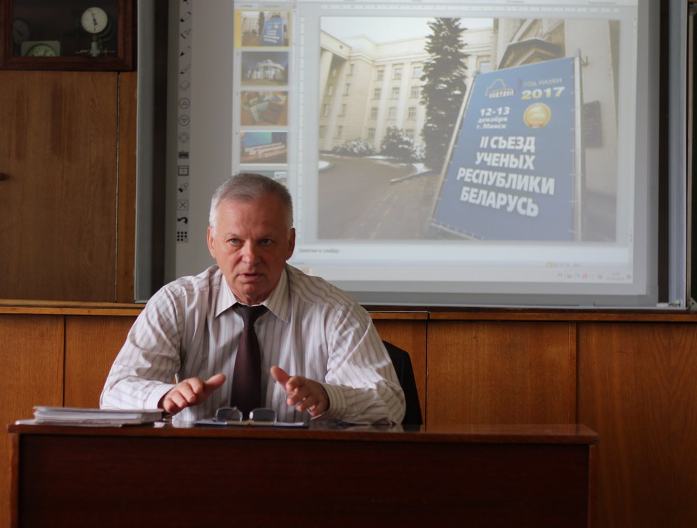 Заведующий кафедрой теоретической физики и прикладной информатики, доктор физико-математических наук, профессор Шепелевич Василий Васильевич рассказал студентам 1 курса, обучающимся по специальности «Физика и информатика», о подходе к формированию научной школы и привлечению студентов к научным исследованиям. Отдельно остановился на работе СНИЛ «Исследовательские задачи по физике», о перспективах научной работы молодых исследователей. Шепелевичем В.В. был показан ряд занимательных экспериментов с рекомендацией литературы для их объяснения. Студенты были информированы о победителе конкурса профессионального мастерства «Учитель года Республики Беларусь – 2017» в номинации «Физика, астрономия, математика, информатика», выпускнике физико-математического факультета нашего университета Дубине Максиме Викторовиче.