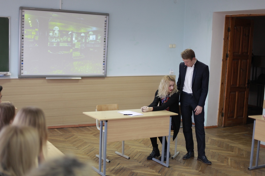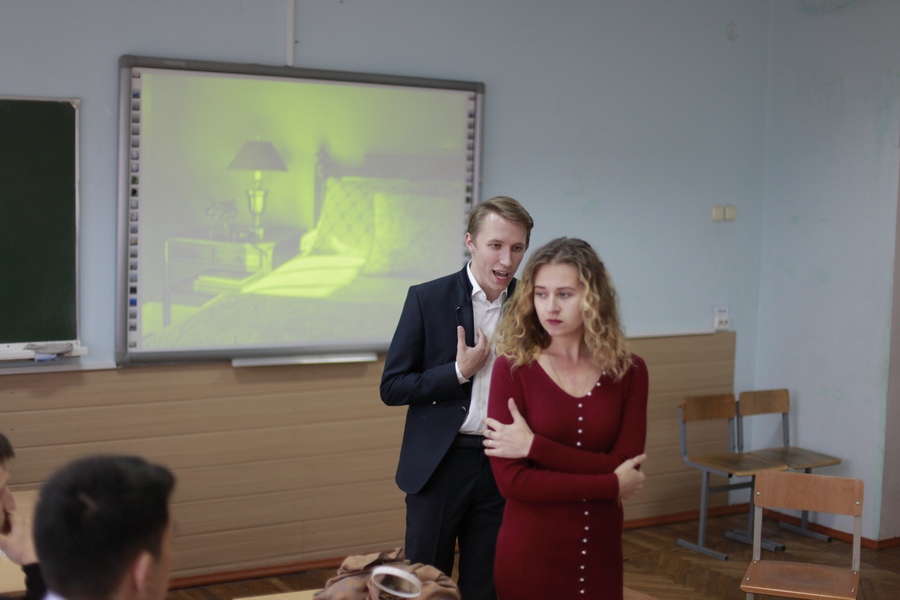 Студенты, перевоплотившись в образы ведущего (Устинов Евгений) и героев (Жизневская Екатерина, Светогорова Анастасия, Вилкова Александра, Полуян Галина, Хромченкова Ярослава, Пилипончик Ирина, Ковалёв Ян, Ковалёв Михаил), смогли показать блестящую актёрскую игру, при этом продемонстрировав превосходное владение языковым навыкам.
